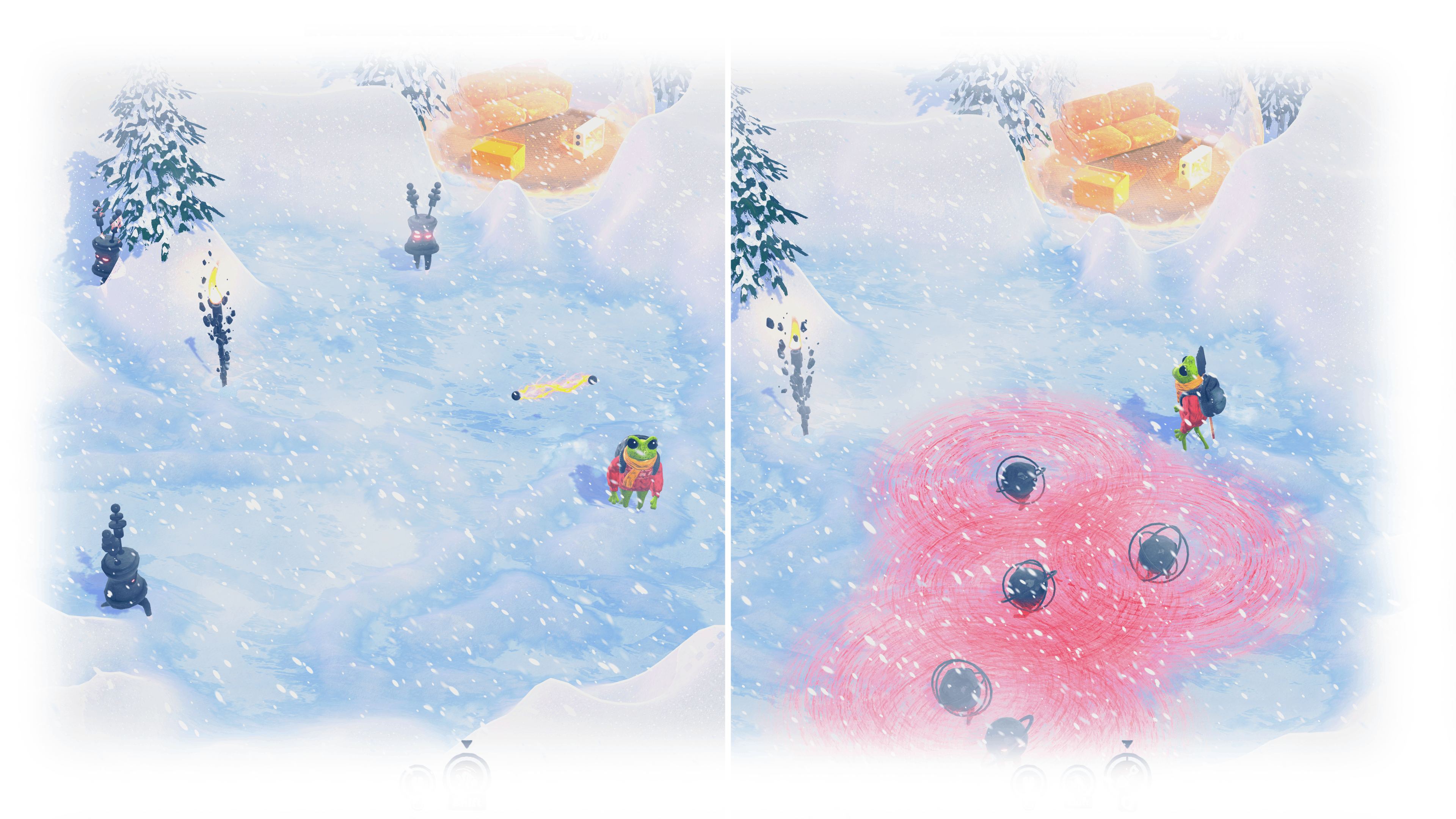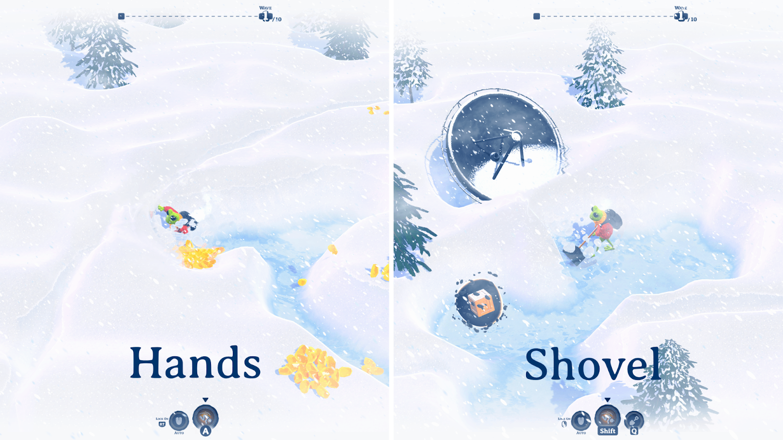 A survival roguelike where a frog digs through freezing snow, uncovers treasures, unlocks upgrades, and battles mystical creatures. Find the escape door — or defeat the final boss to survive.