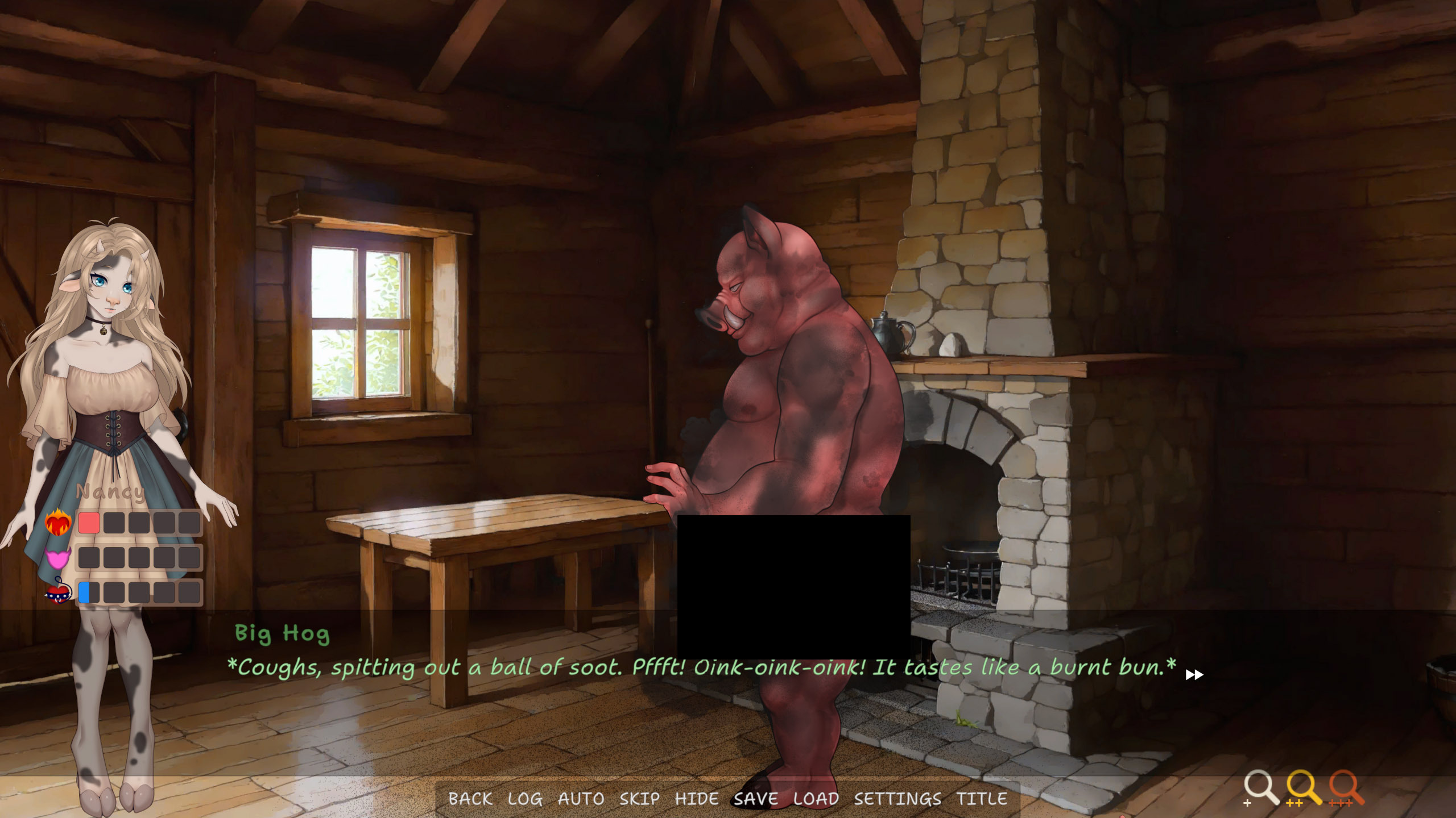 NSFW interactive Fantasy Furry Visual Novel with JOI mode about piggy girl Swinky. Chubby piggy is stuck! Will you help her? And how did she get in this situation?!