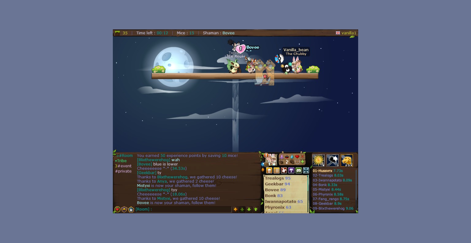 Transformice is an MMO platformer about dozens of mice running to bring back the cheese! Will the almighty Shaman help you or just ruin everything? Millions of levels, hectic physics, skill trees, and more importantly... hats!