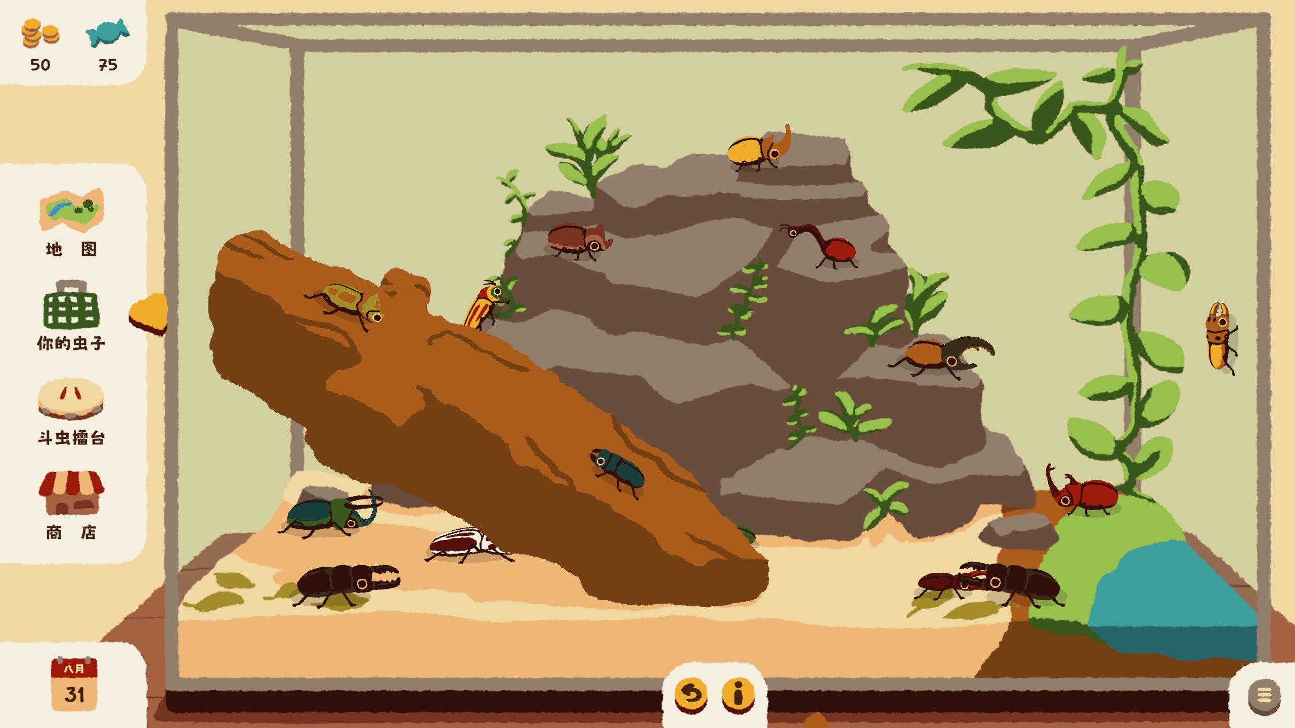 Enjoy summer in Kabuto Park! Catch the cutest bugs, train them and win the Summer Beetle Battles Championship in this tiny bug collection game! Upgrade your equipment to find rarer, stronger and shinier little friends.
