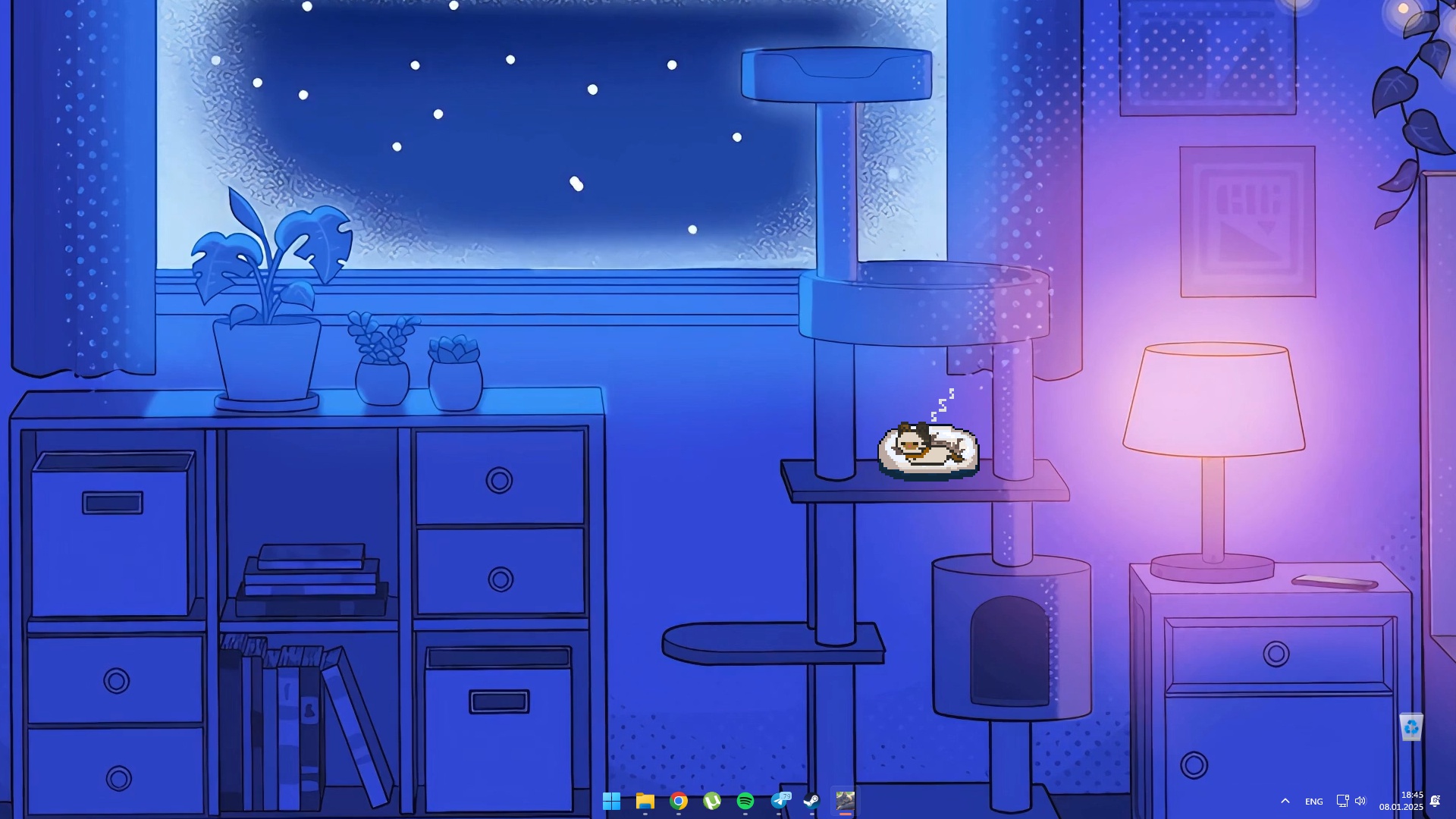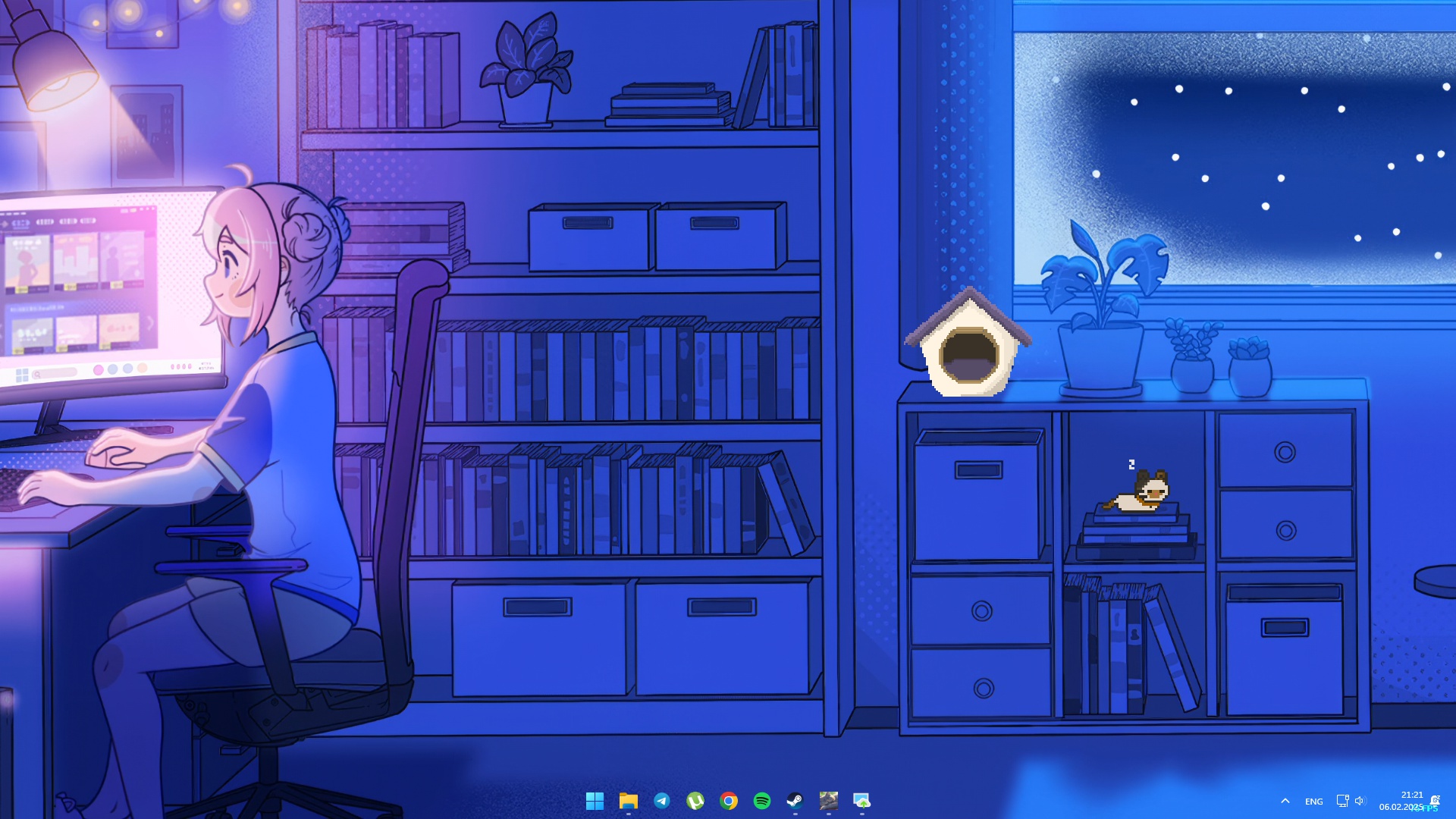 Милый кот на вашем рабочем столе. Он будет мурлыкать, когда вы устали. Он будет охотиться за курсором, когда вы работаете. Он будет спать, пока вы играете.
