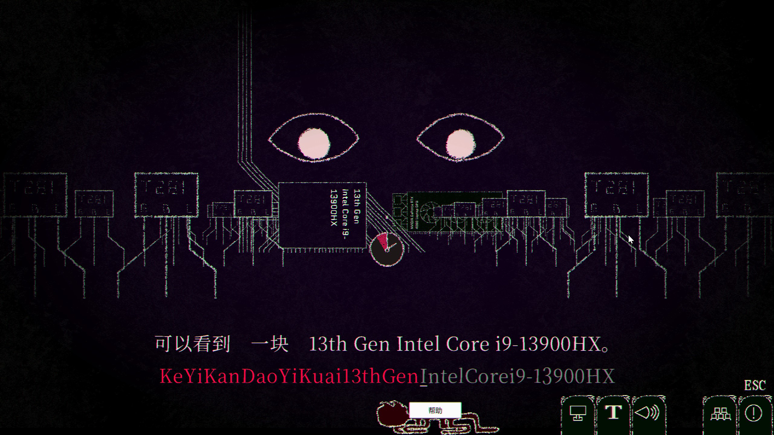 "Let's play a typing game." Dyping Escape is a simple game where you type according to instructions from the game master, a mysterious eyeball. But be careful; everything you type becomes reality. Just be careful not to brick your computer.