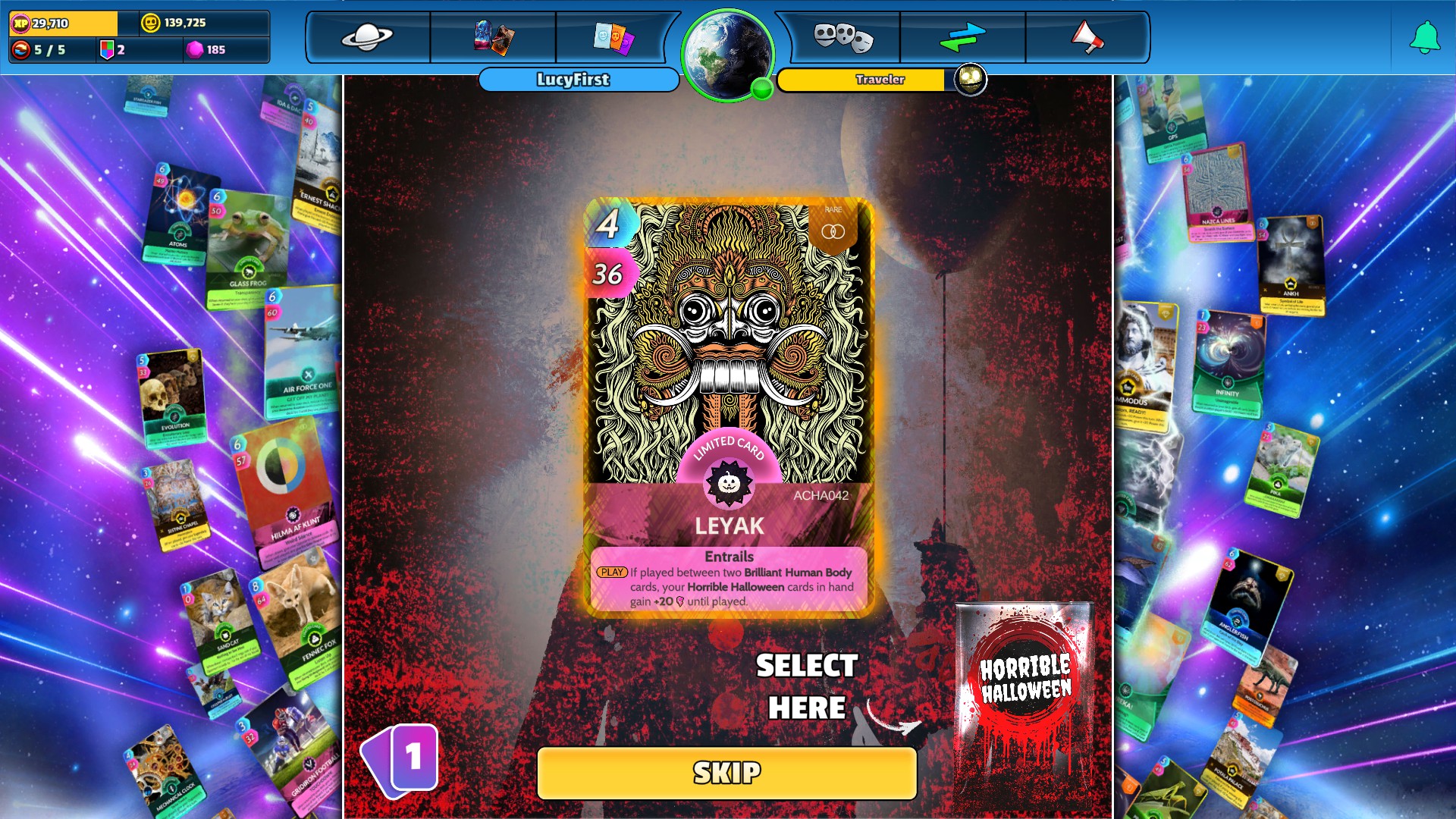 Cards, the Universe and Everything is a unique trading card game with almost limitless possibilities: Dinosaurs, Norse gods, blue-footed boobies, Samurai, volcanoes, even the god particle. With the universe’s thingamabobs and endless strategies, are you ready for this gloriously bonkers game?