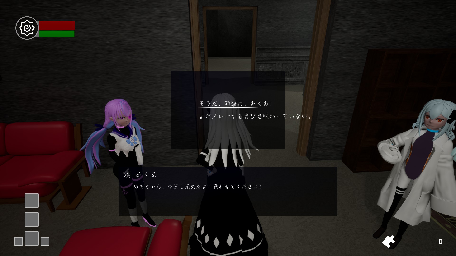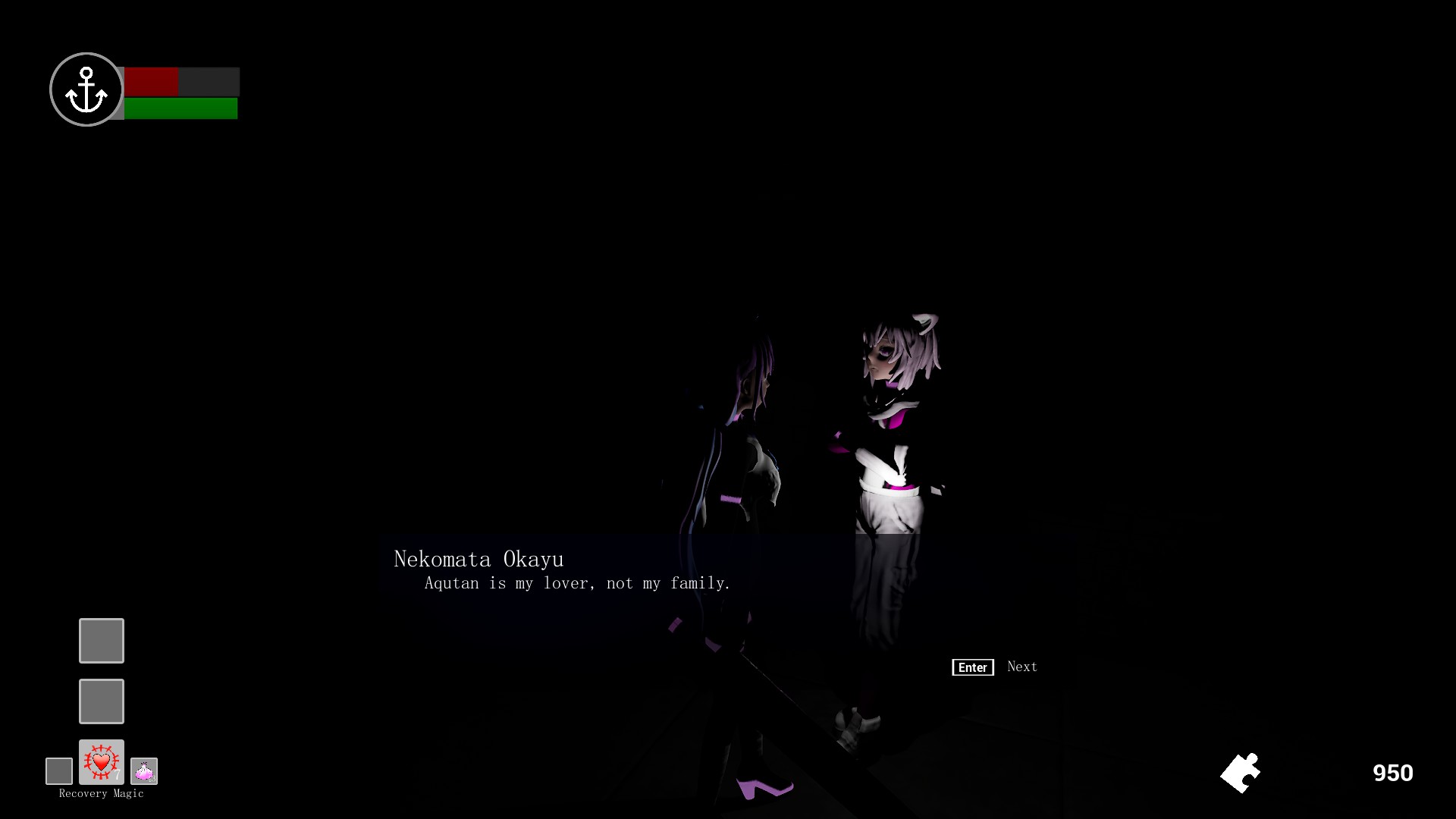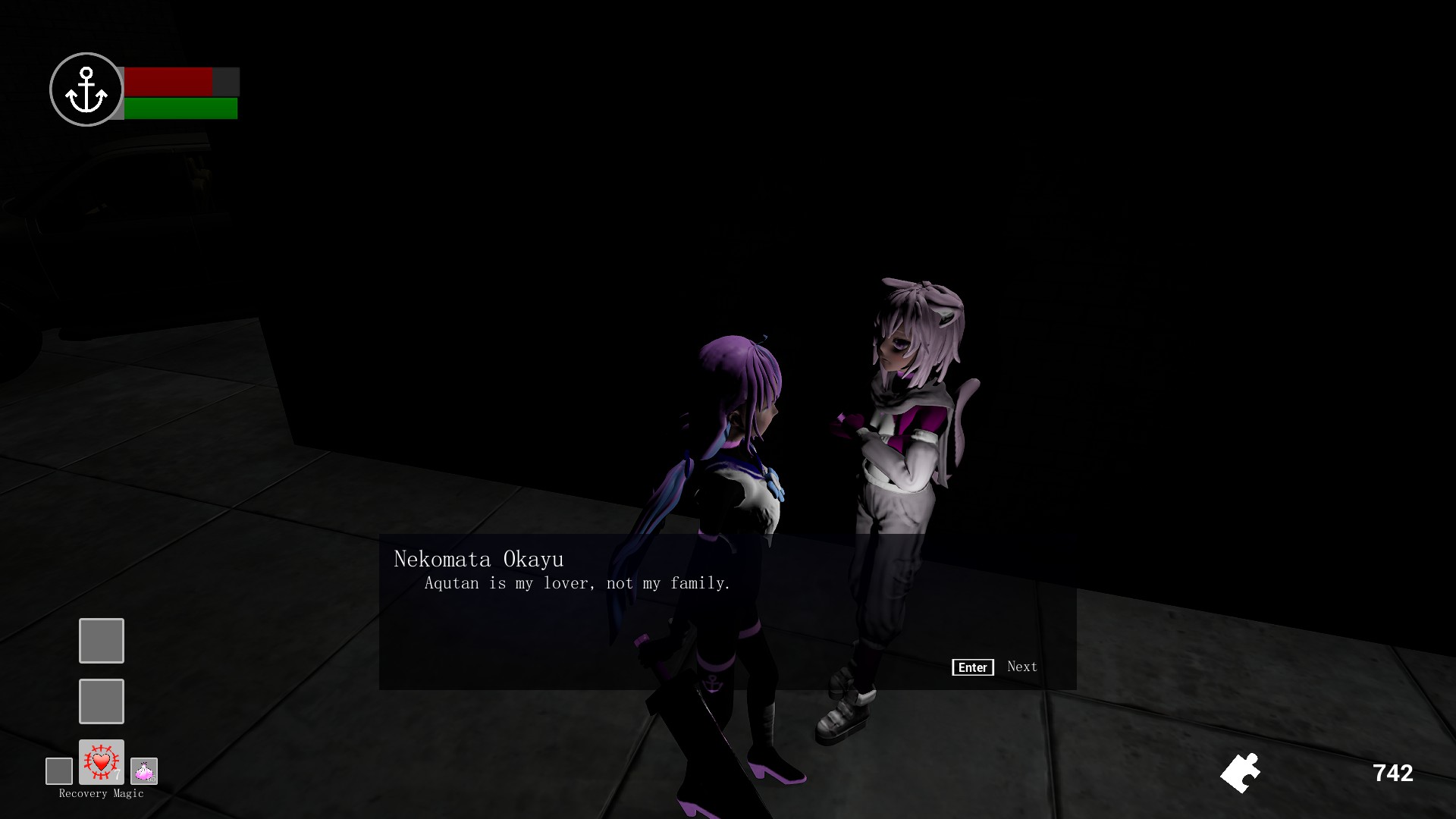 A fan action game for Meaqua. An ominous vortex "Abyss" appears above the city, and the city's order is collapsing. Kagura Mea and Minato Aqua, who have lost their memories, receive a call from the city. In order to solve the mystery of themselves, they embark on the road to return home.