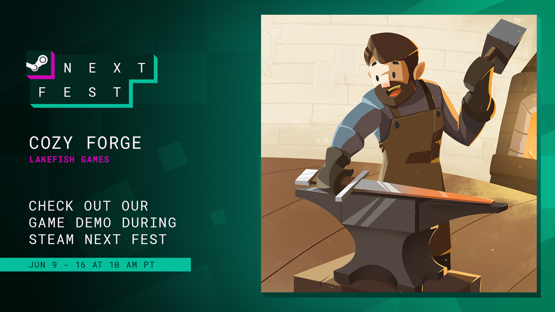Cozy Forge is a cozy medieval sim where you run a blacksmith shop. Melt, mold, and forge tools for townsfolk be it a sickle for a peasant or a sword for a knight. Lose yourself in the relaxing rhythm of your forge.