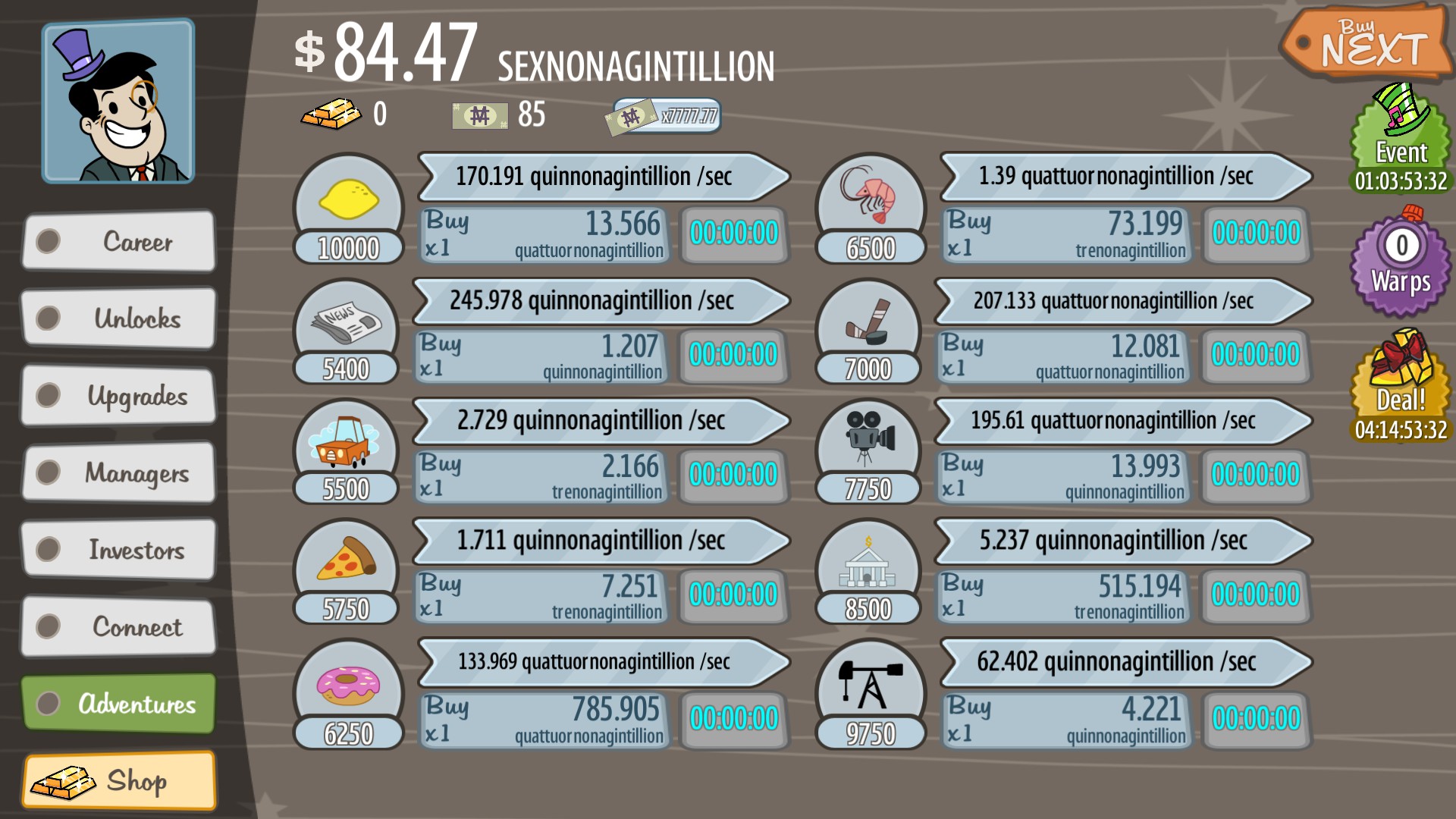 Welcome, eager young investor, to AdVenture Capitalist! Arguably the world's greatest Capitalism simulator!
