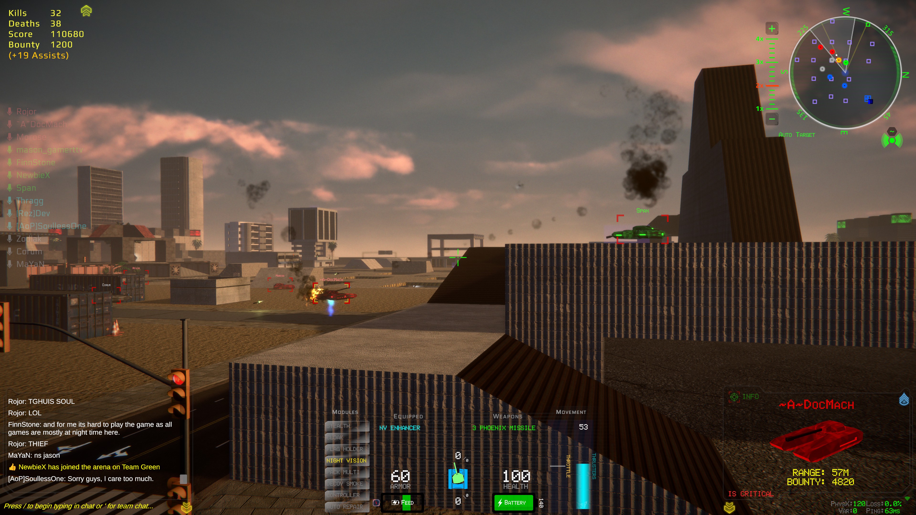 An online first-person tank arena combat game where teams of 3–10 players go up against one another in arcade-style warfare—seize control points, capture enemy flags, outmaneuver and outduel your foes. Dare you master the keys and dominate the retro designed arenas like the OG gamers once did?