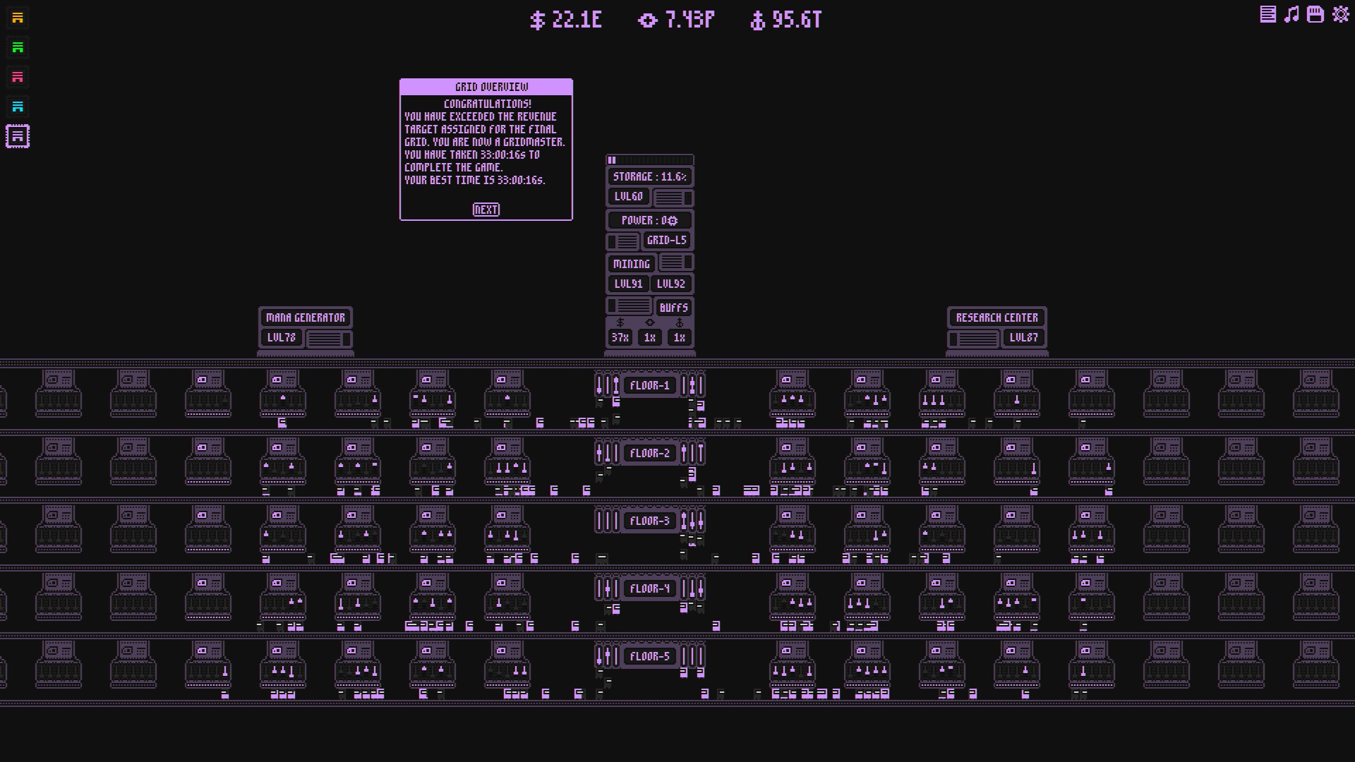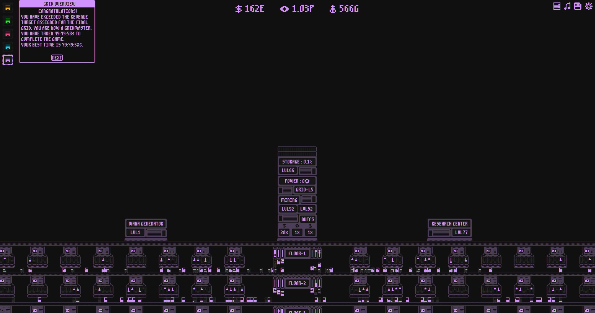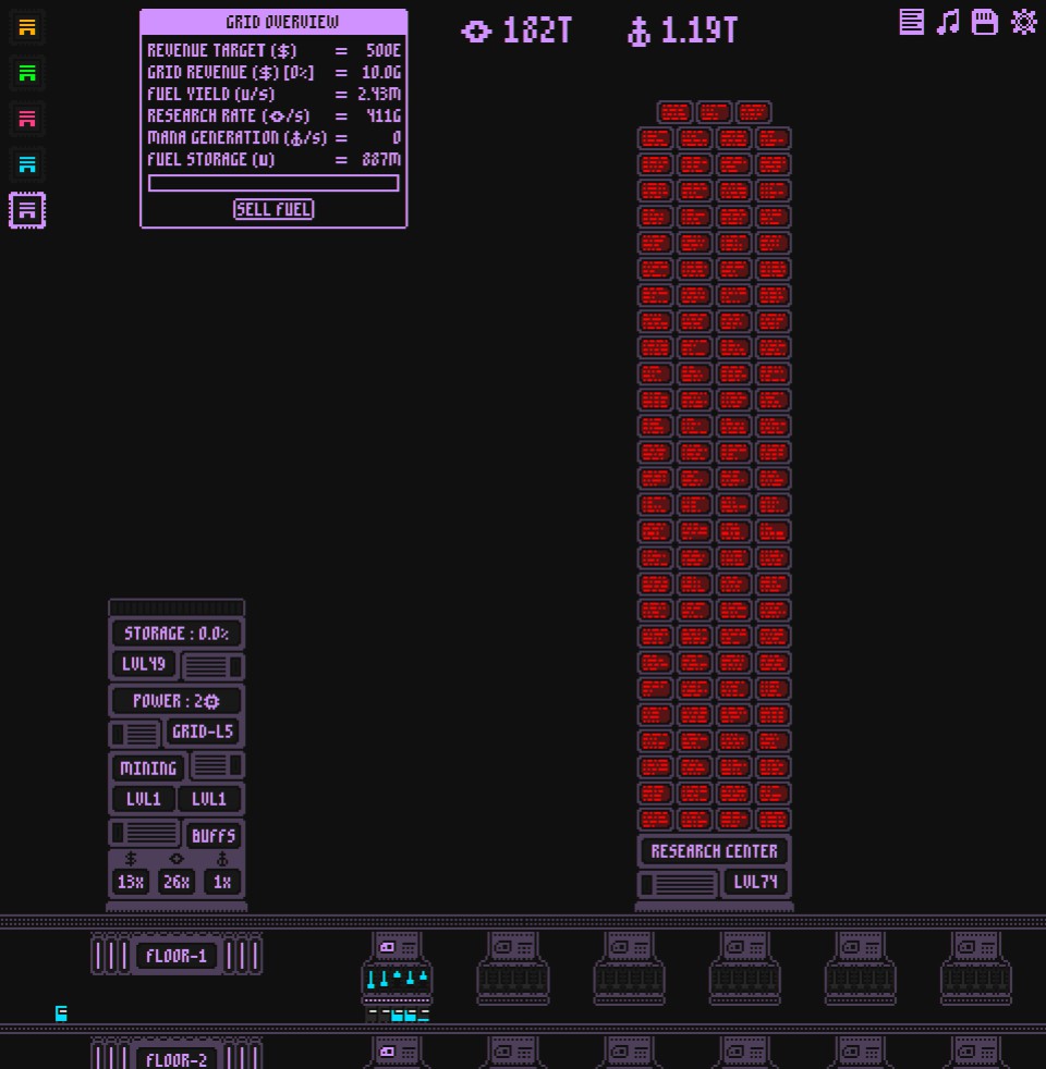 Gridkeeper is an incremental game about managing "Grids" and using their power to run MineBots, research tech, and grow your mining empire by getting better Grids.