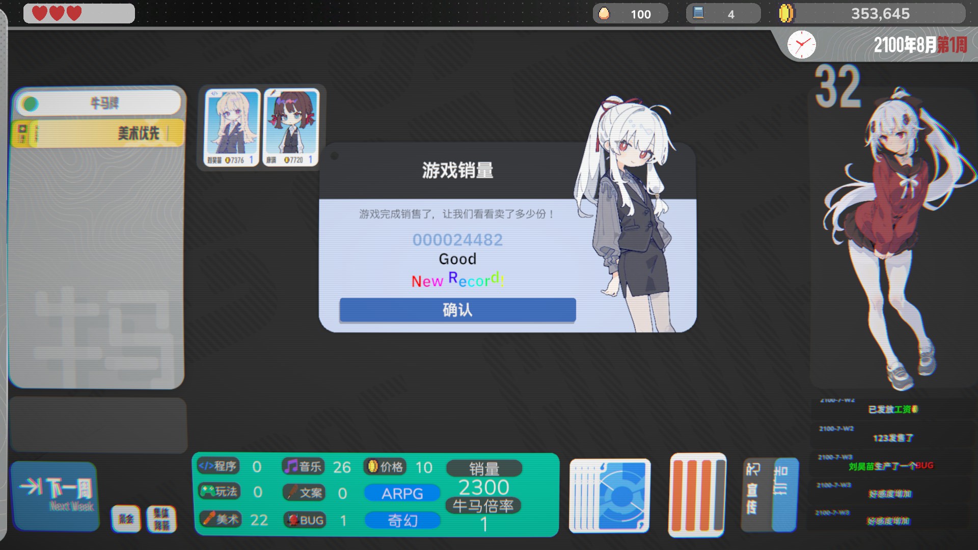 A turn-based simulation game, where you manage a game development company. You can choose to run the company honestly and diligently or resort to some unconventional methods.