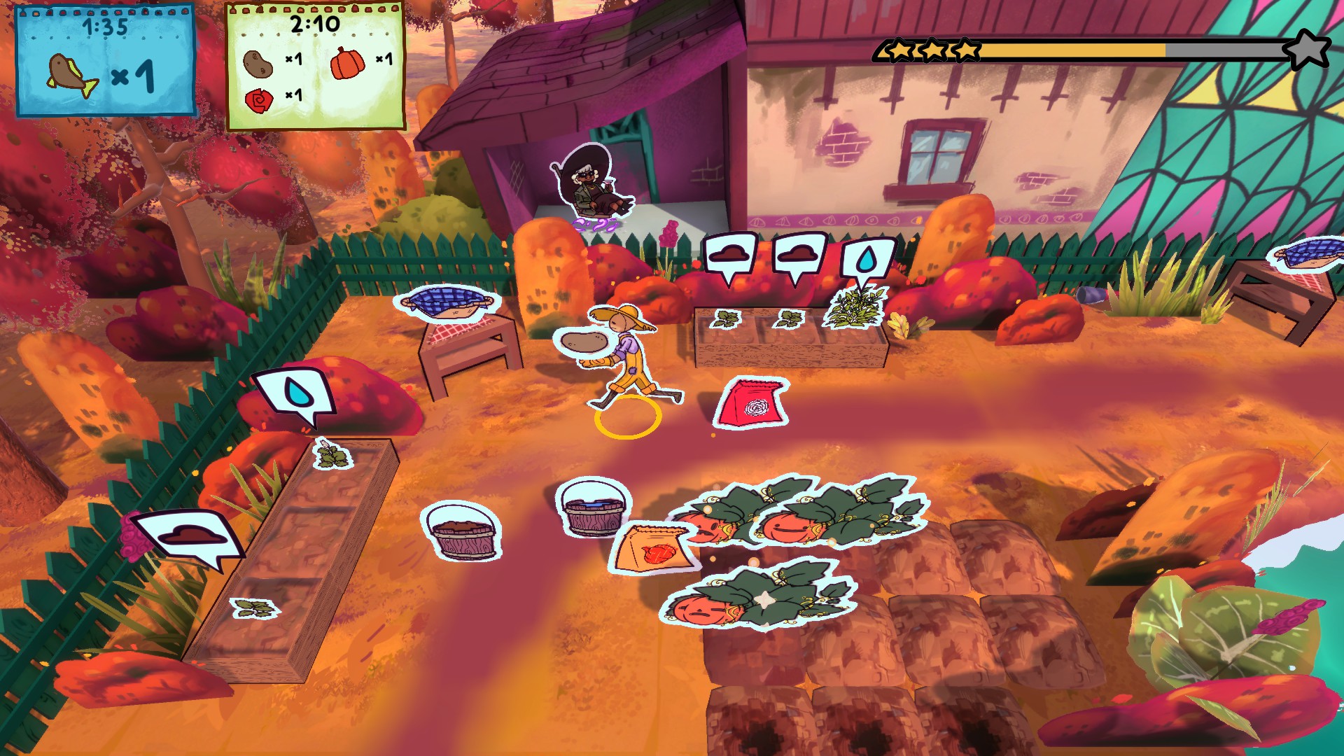 In Season is a chaotic and fun couch Co-op game! Complete orders in time by planting and harvesting crops correctly and gain enough stars to make it to the next season!