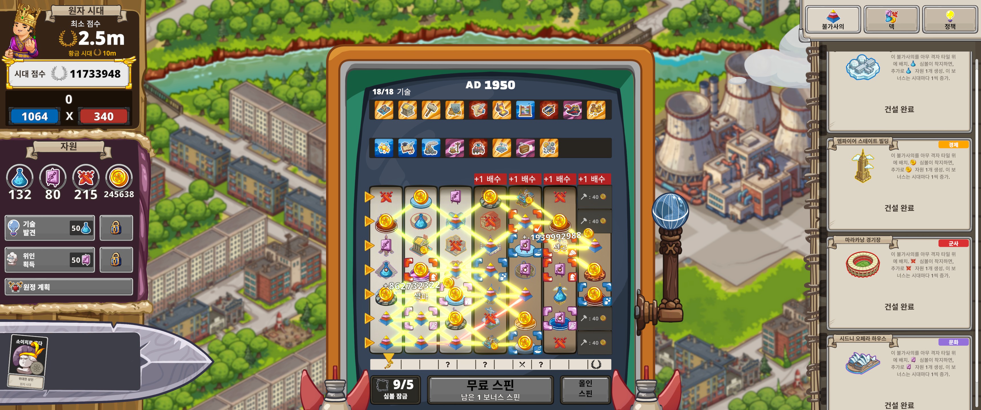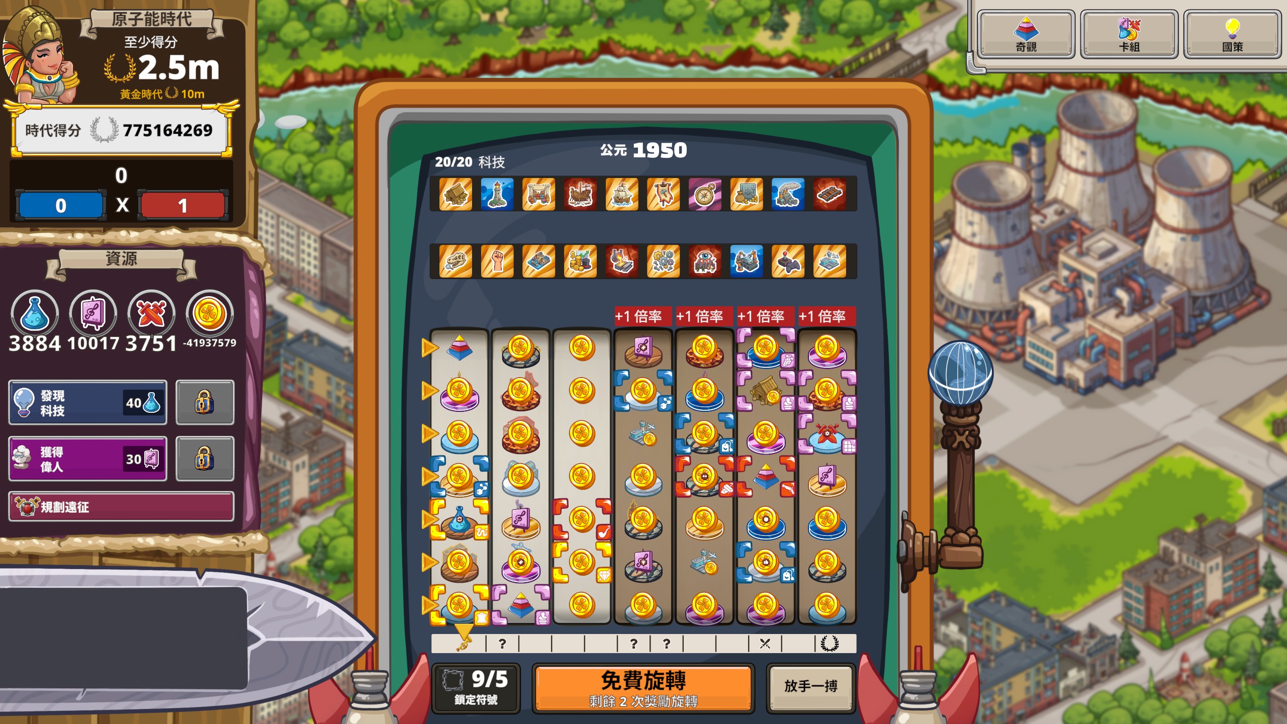 Spinera is a chaotic yet euphoric civilization management game… decided by a slot machine. Pick a leader, build Wonders, and see if luck favors your empire. Light, surprising, and perfect for short, fun runs.