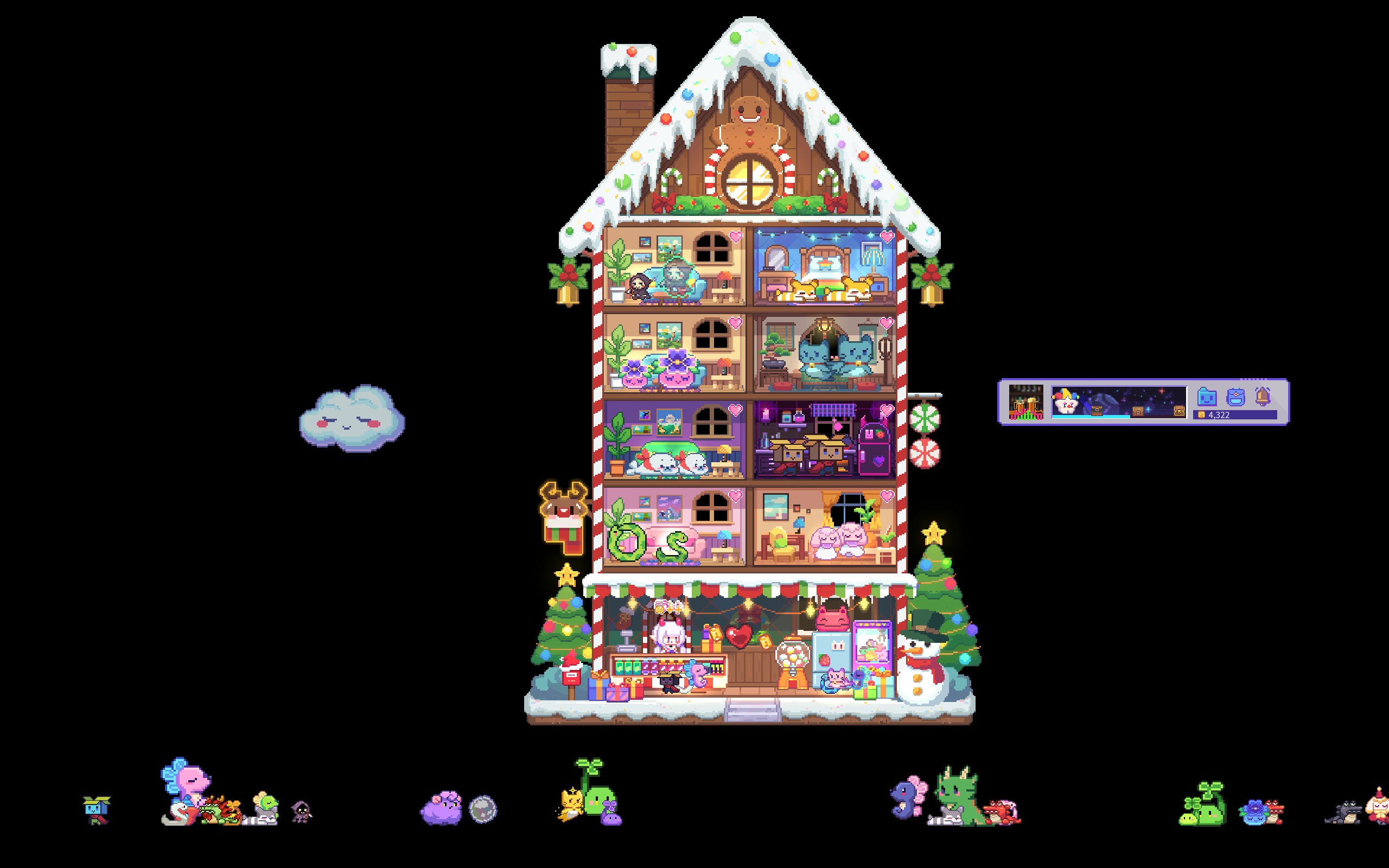 Collect over 100 stylish little pets on your desktop! They can freely move along the bottom of your screen, or live in the little houses you've carefully decorated for them. Hmm... or perhaps send them on adventures to earn treats?
