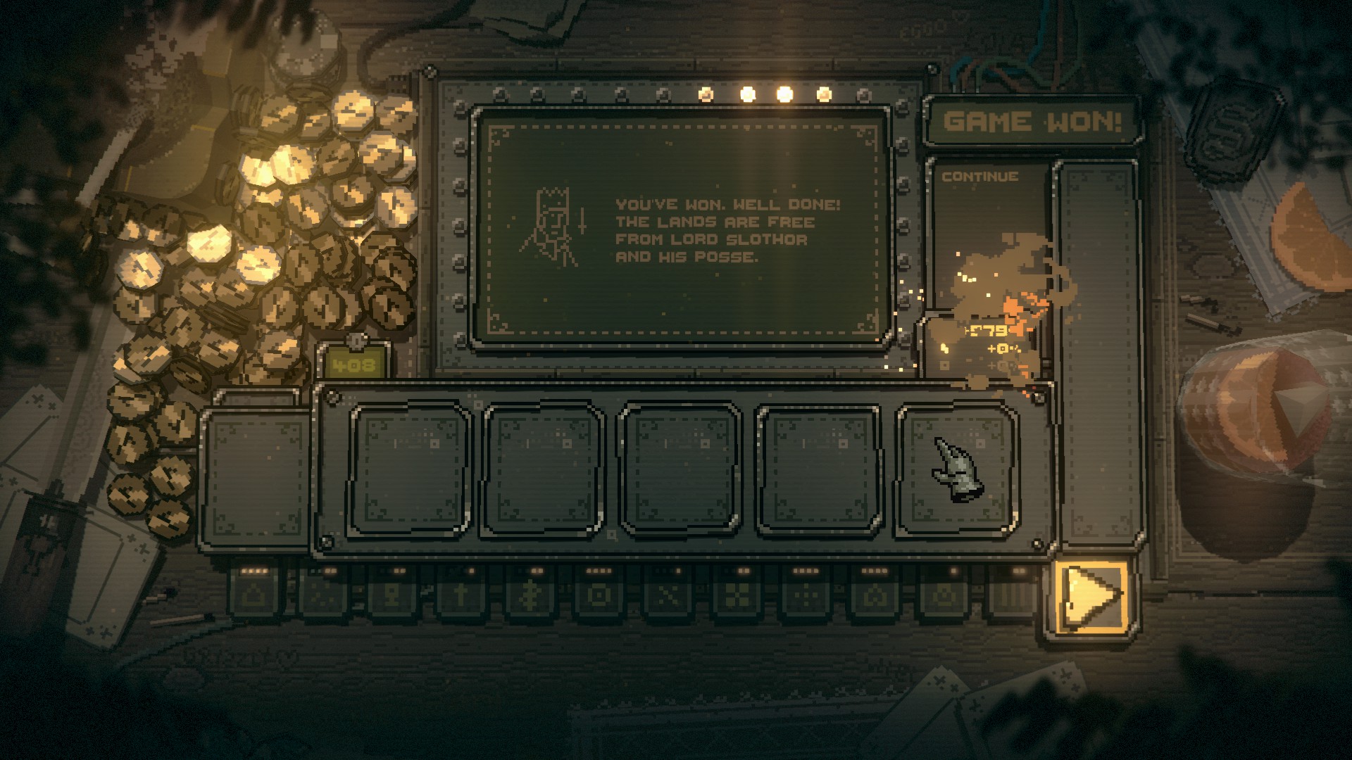 A retro mini-roguelike inside a slot machine. Steady your blade - and spin!
