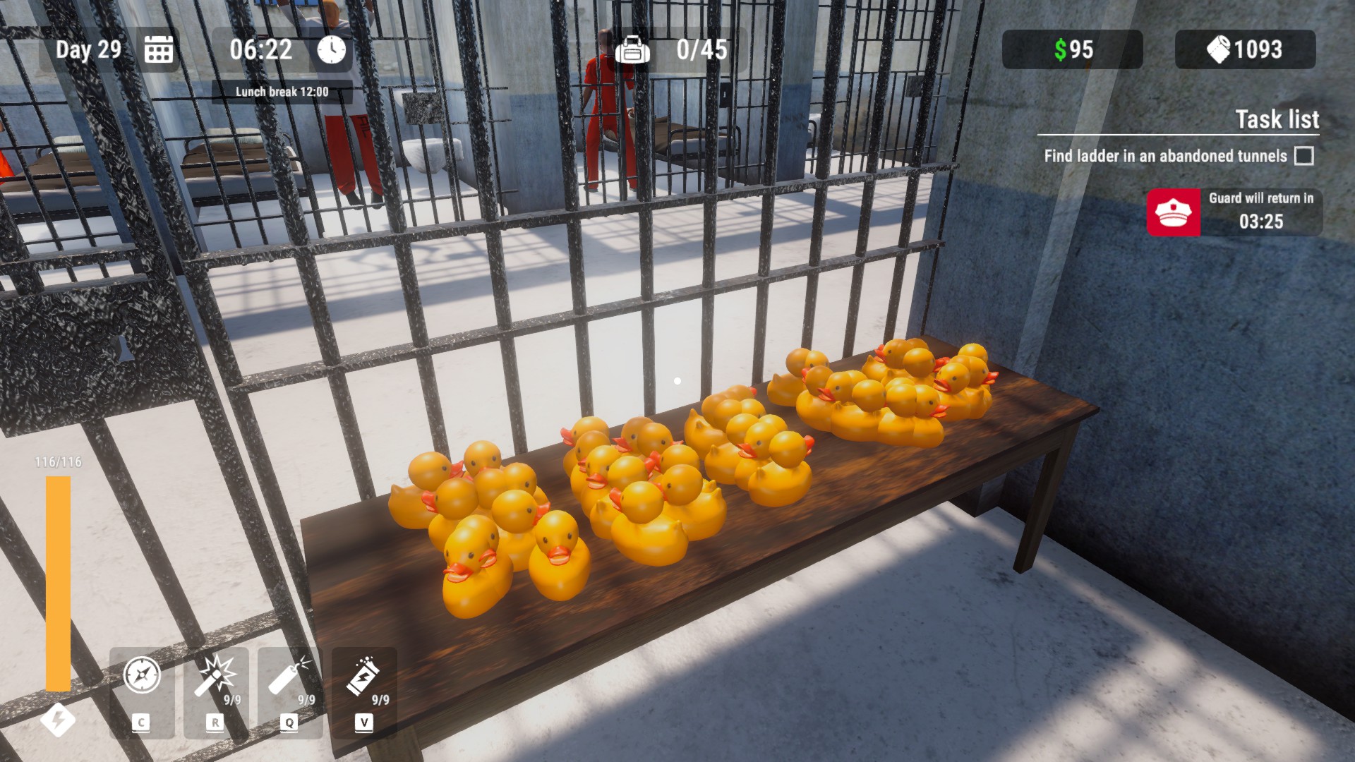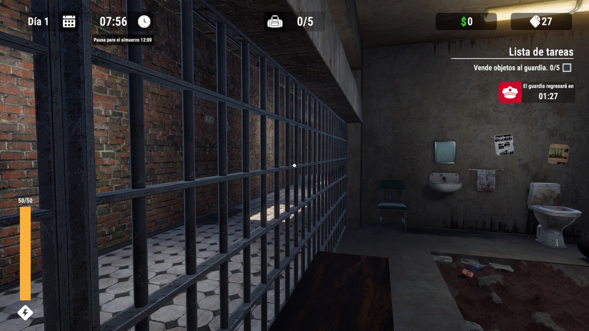Too long in this prison, time to get out of here. Pull the carpet and start digging with a teaspoon. Watch out for the guard, sell him the junk you find. Trade toilet paper with the prisoners. Get better items and improve your stats. Expand the tunnel, use glow sticks and dynamite. Will you escape?