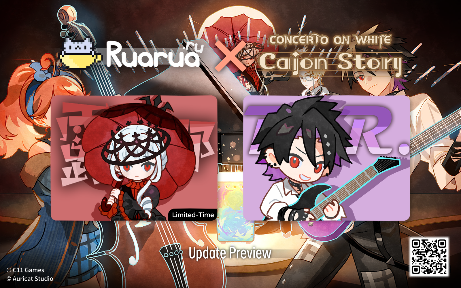 The collaboration between Ruarua.ru and the rhythm game "Concerto on White: Cajon Story" has officially begun! This update introduces 2 new titles and 2 new name boxes. Explore new worlds and meet them along the way~
