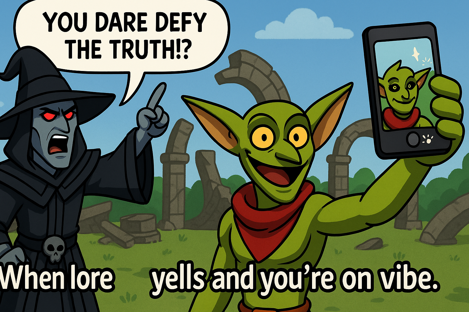 A short and absurd goblin RPG about portals, mushrooms, and post-ironic freedom. Challenge a mage obsessed with order, or just dance in the mud. It's your lore now.