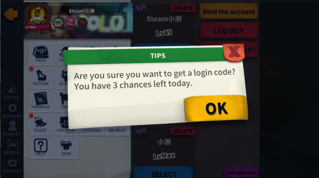 4. Confirm the action, and the system will generate a Login Code