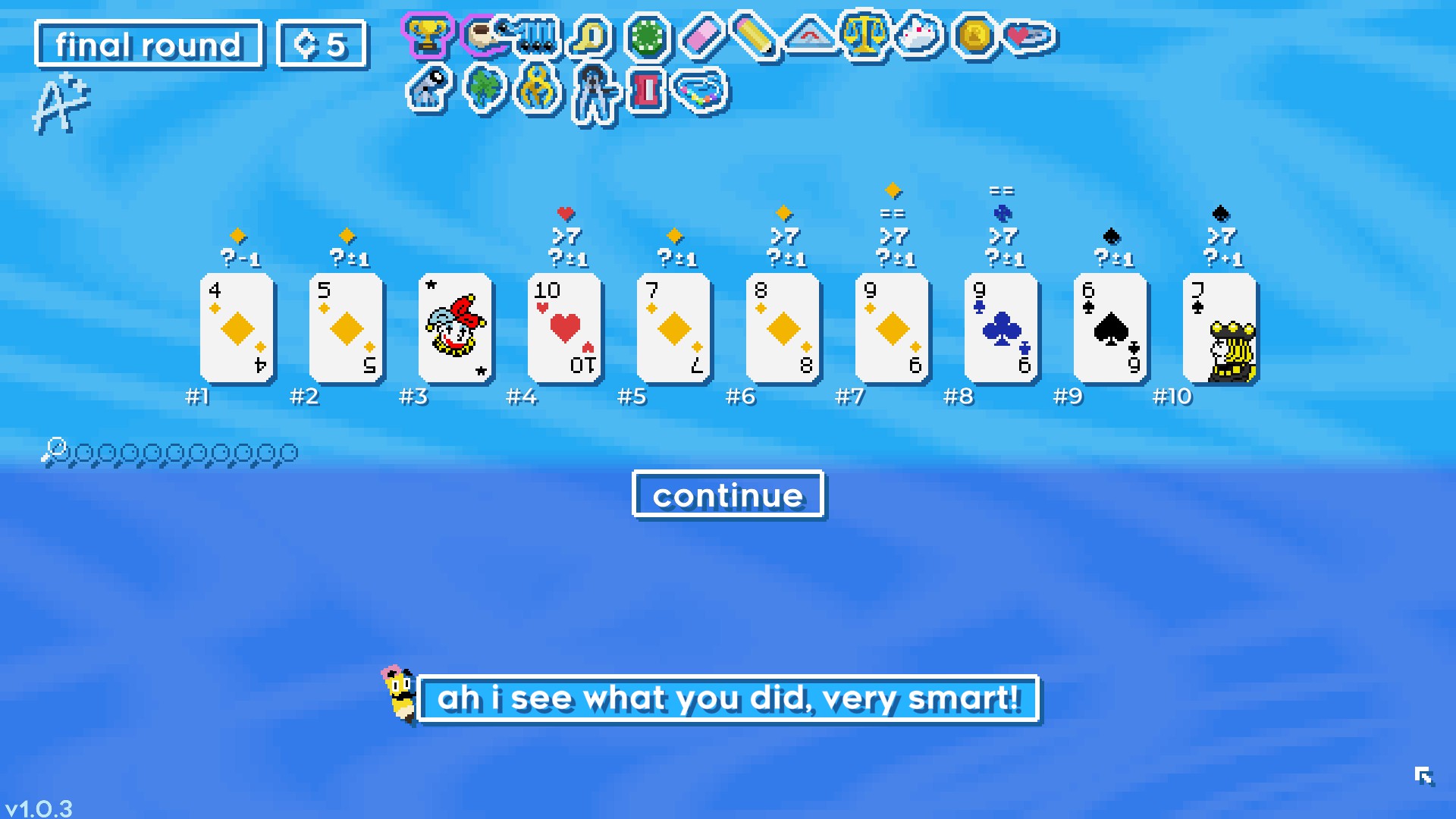 Brain School is chill card-based deduction game. A set of playing cards are shown face down: 🃏🃏🃏🃏🃏 Solve the code by asking questions such as "What is the sum of the face cards?" or "Where are cards with the same value?" and unlock new items that will help solve increasingly harder rounds.