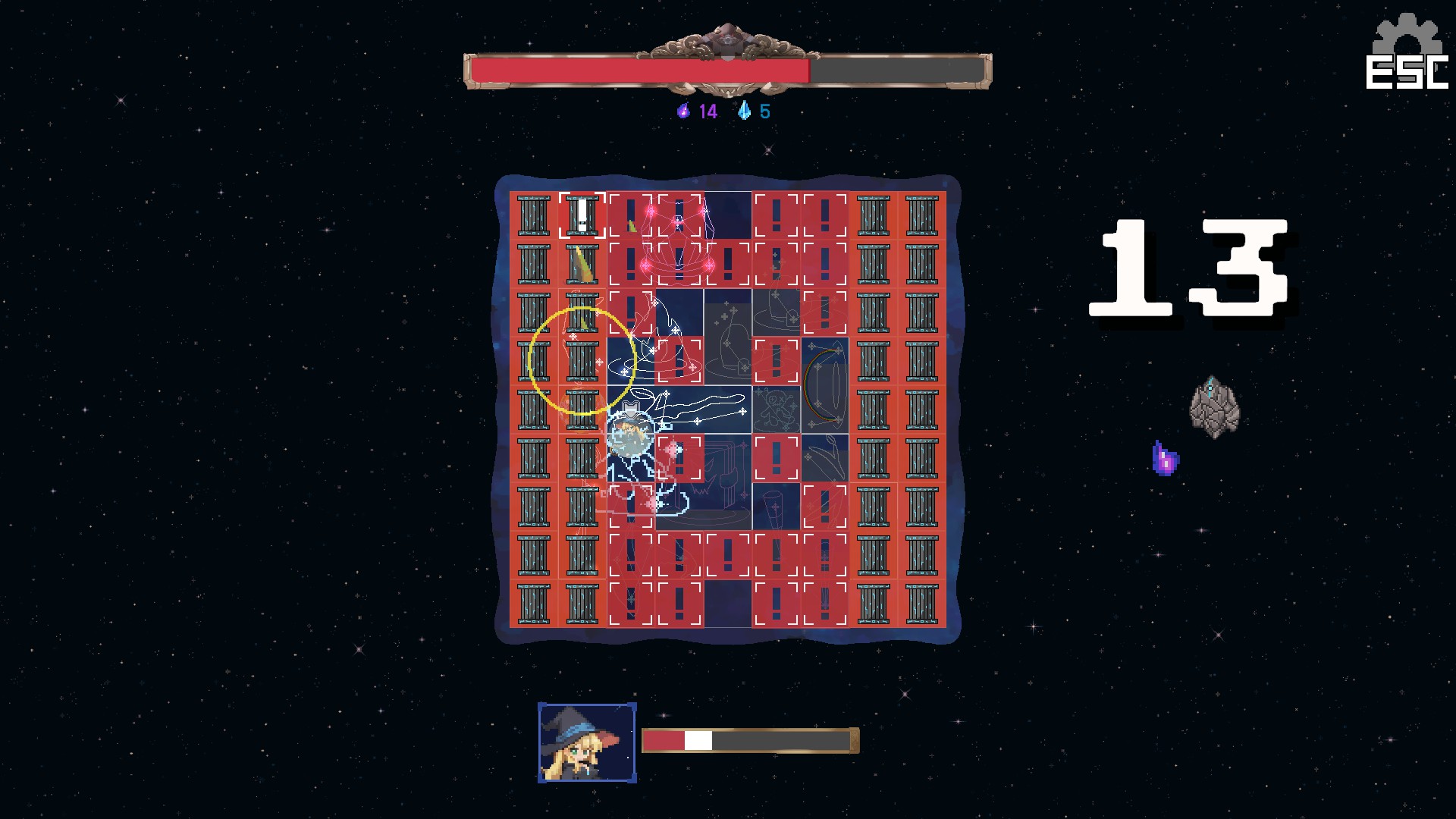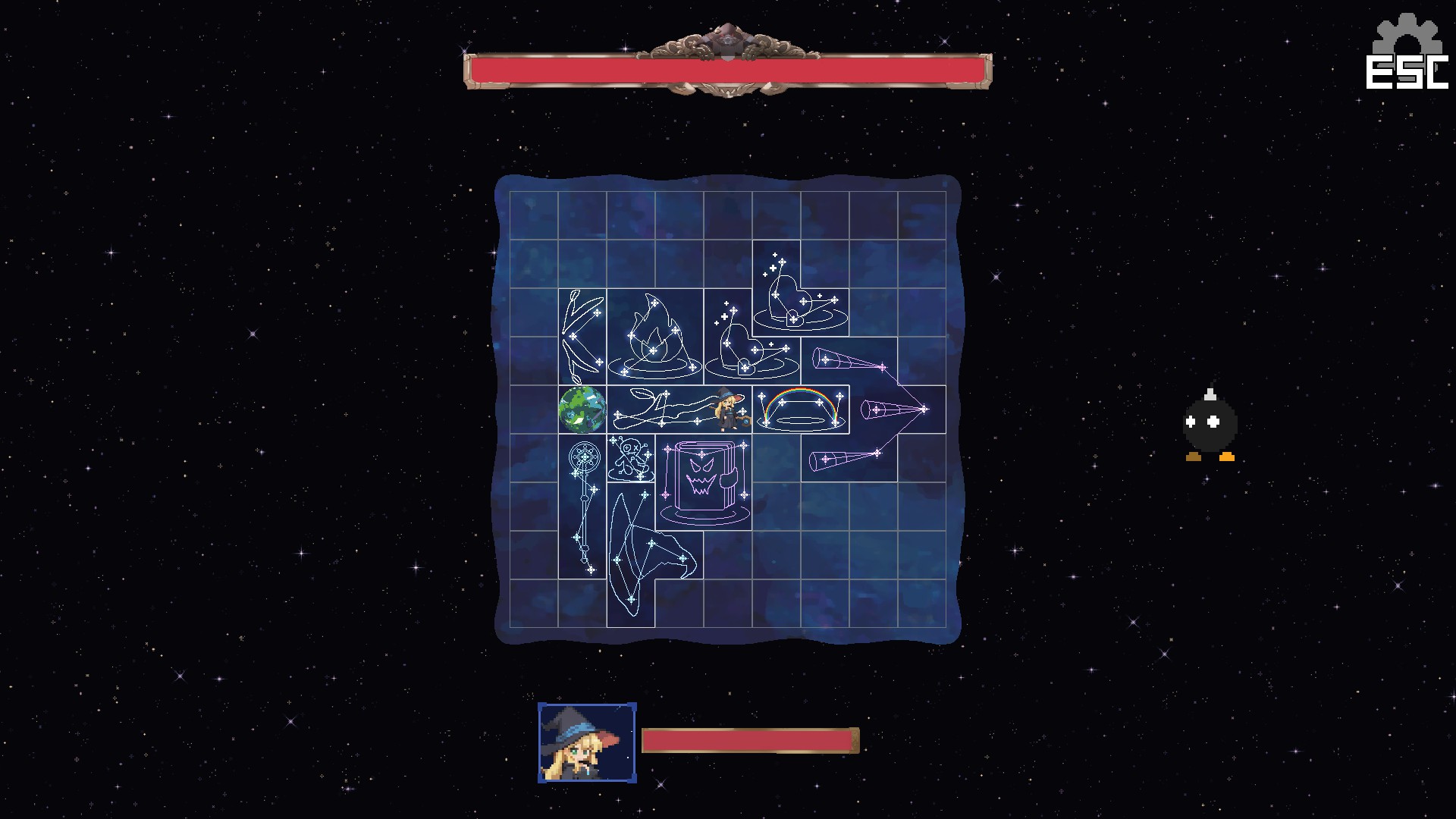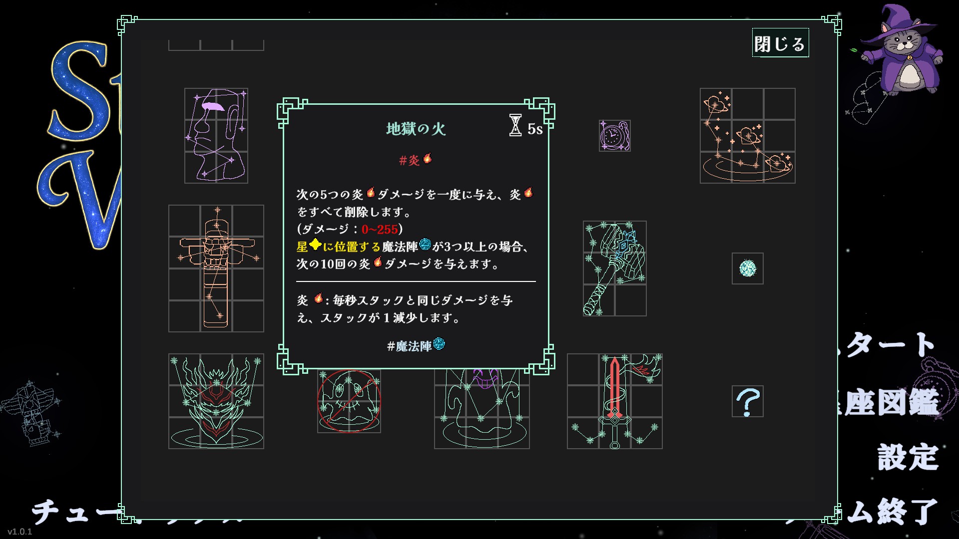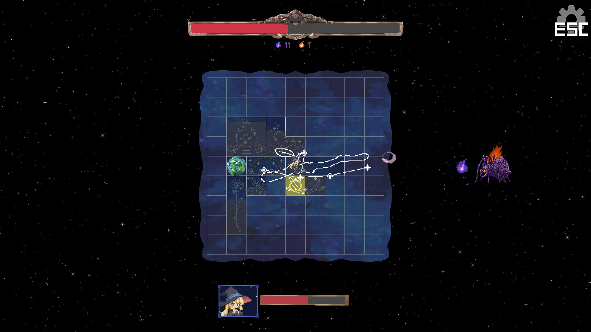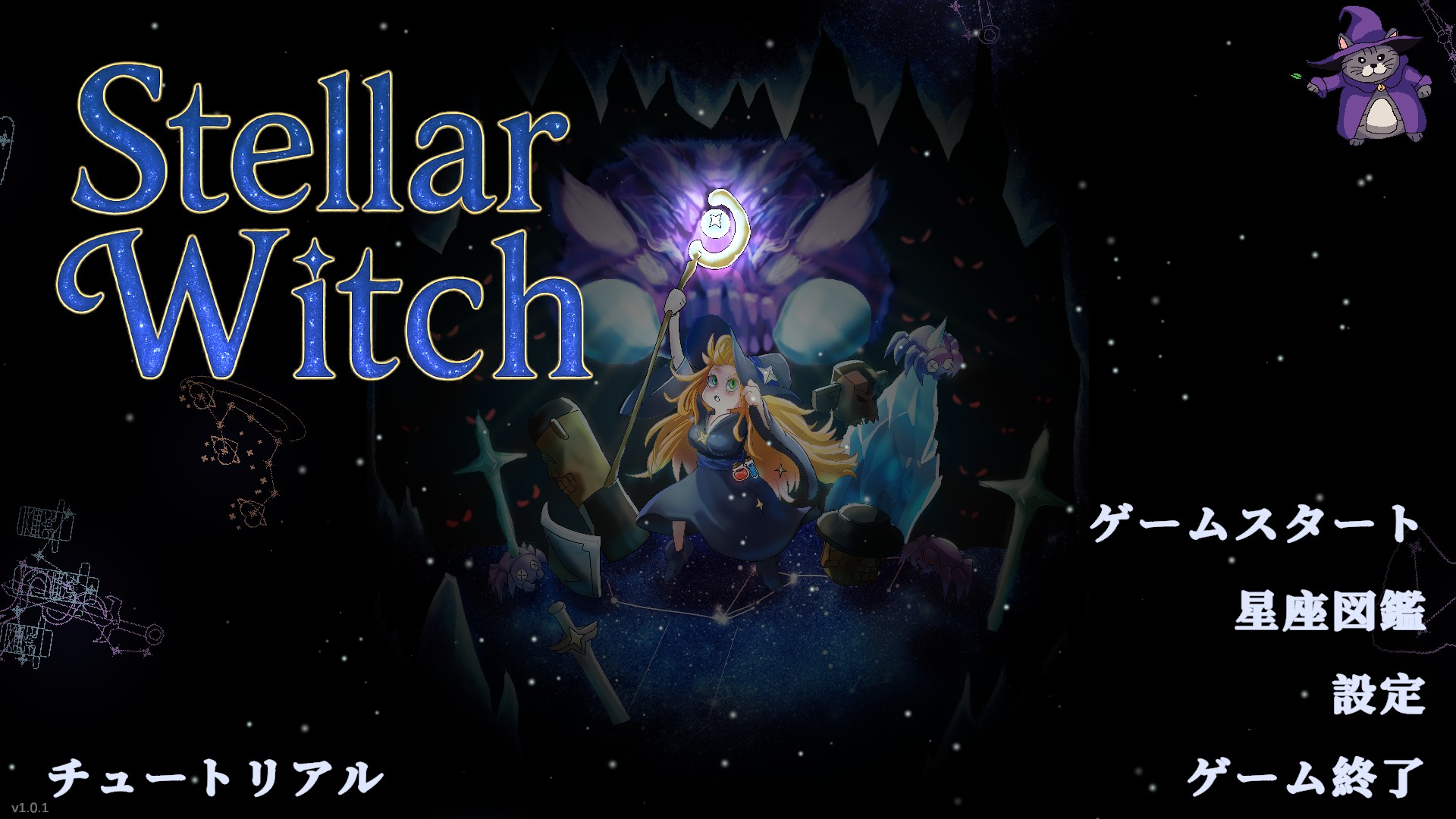 "Stellar Witch" is a grid-dodge action game with inventory management. Become a star-powered witch on a journey to become the Grand Mage. Collect gold in battle, buy and place constellations, and use their powers and synergies to fight ever-stronger enemies.