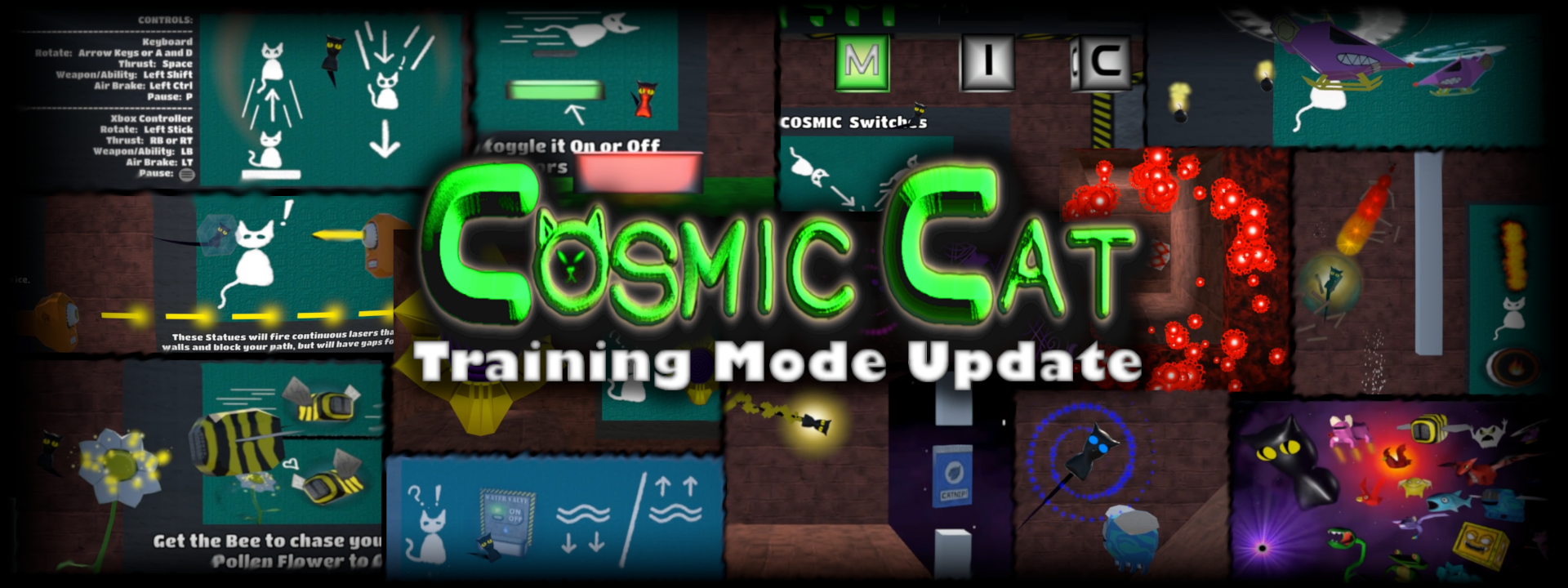 Updated Cosmic Cat with the Training Mode Update, which has 12 new Training Levels to give you a safe space to practise your flying skills and learn more about the game mechanics throughout the game.