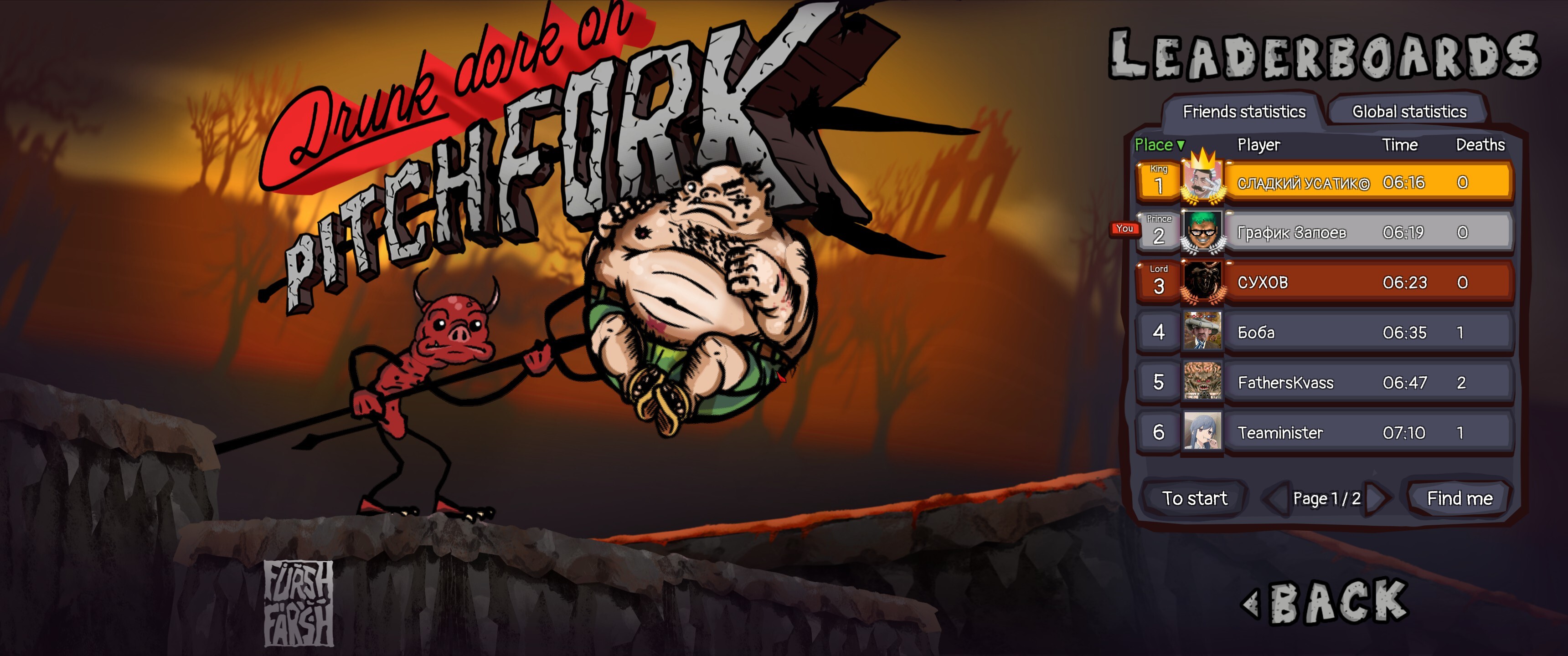 Drunk Dork on Pitchfork is a unique rage arcade game. Play as an Imp dragging a hefty Dork through hellish traps & puzzles to throw the ultimate party! Control both characters with special fork mechanic - keep yourself and your living cargo alive while he tries to tumble into lava!