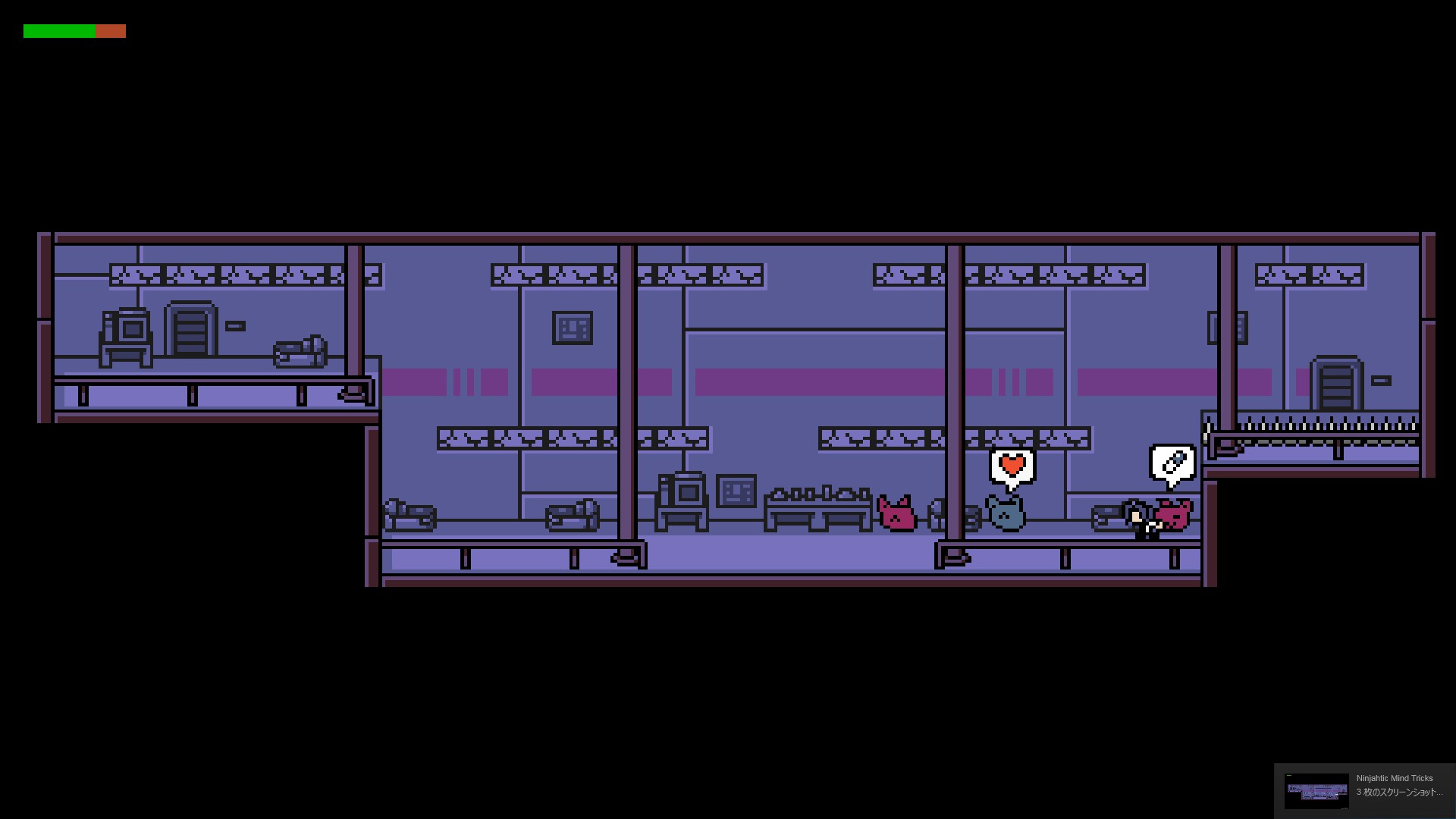 Ninjahtic Mind Tricks is an 8-bit hack-and-slash platformer with stealth, adventure, and puzzle elements. Like it's predecessor, Ninjahtic, levels have an open-ended nature and are presented in a linear fashion.