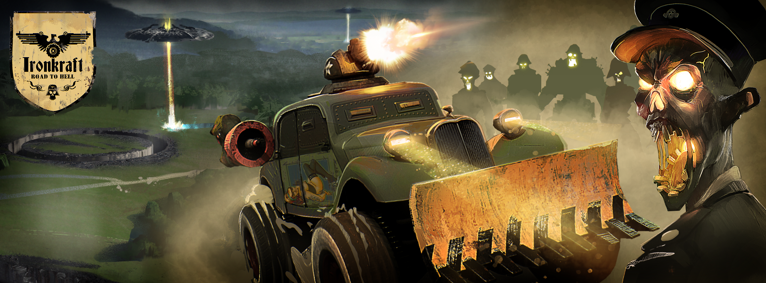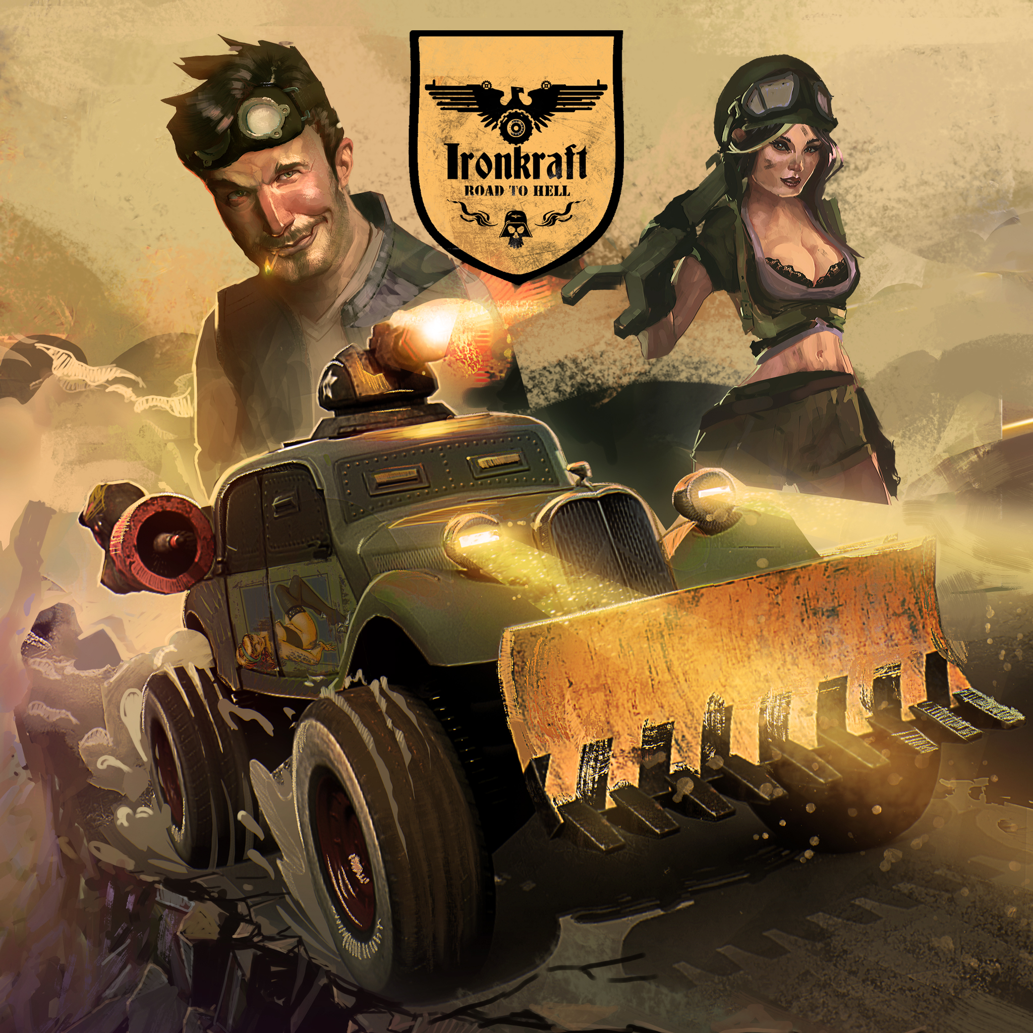 Ironkraft - Road to Hell is a fast paced 2.5D side-scrolling car-brawler with an alternative World War II story - Zombies, Nazis, Aliens and maximum craziness included! In a post-apocalyptic vehicle driven universe where only a few dare to step on the road, the fate of the world lies in your hands.