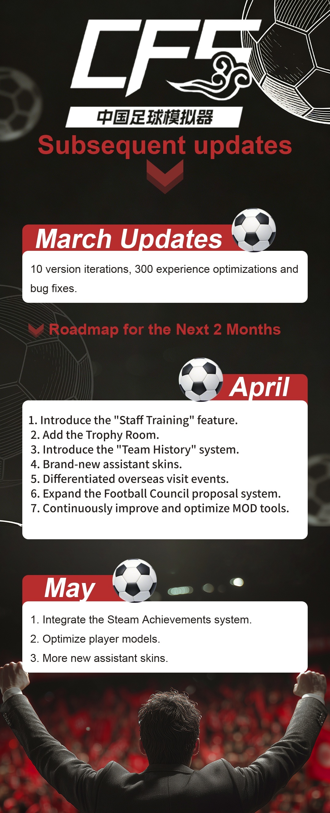 "Chinese Football Simulator" is a management game themed around Chinese football. As both club owner and head coach, you'll develop and manage teams—either existing or custom—immersed in authentic Chinese football culture.
