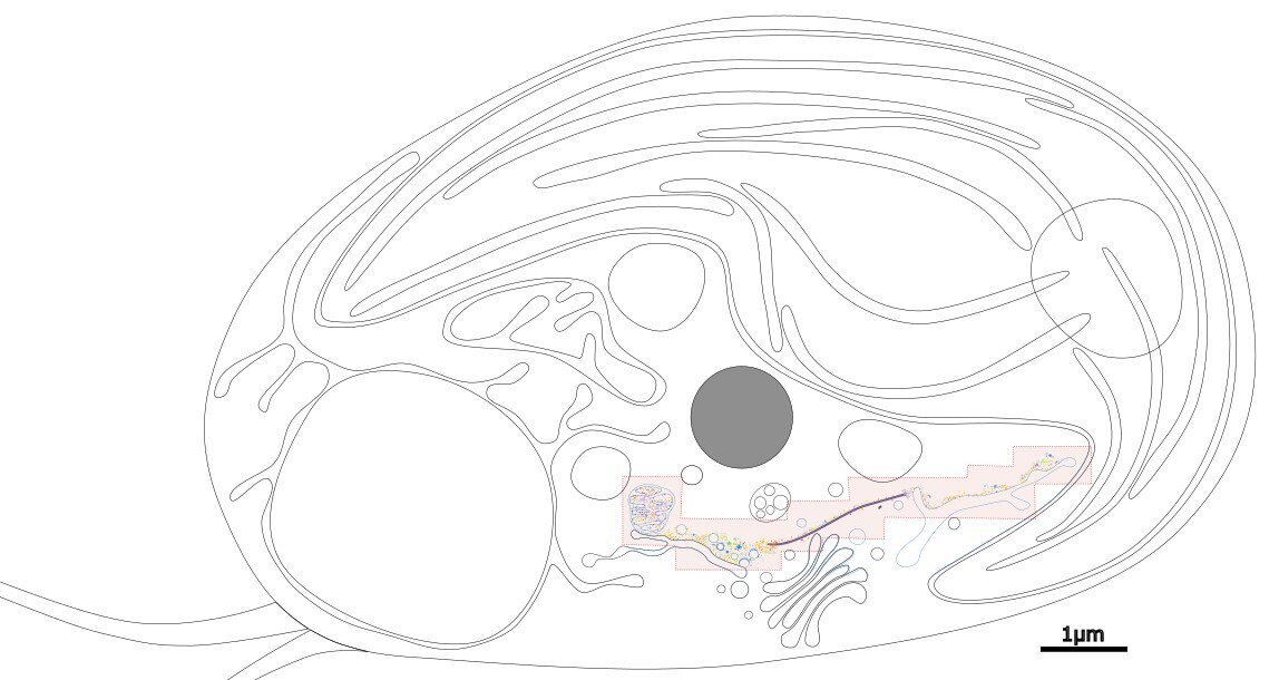 Figure 1. Overview of an algal cell. Colored regions are currently implemented in game.
