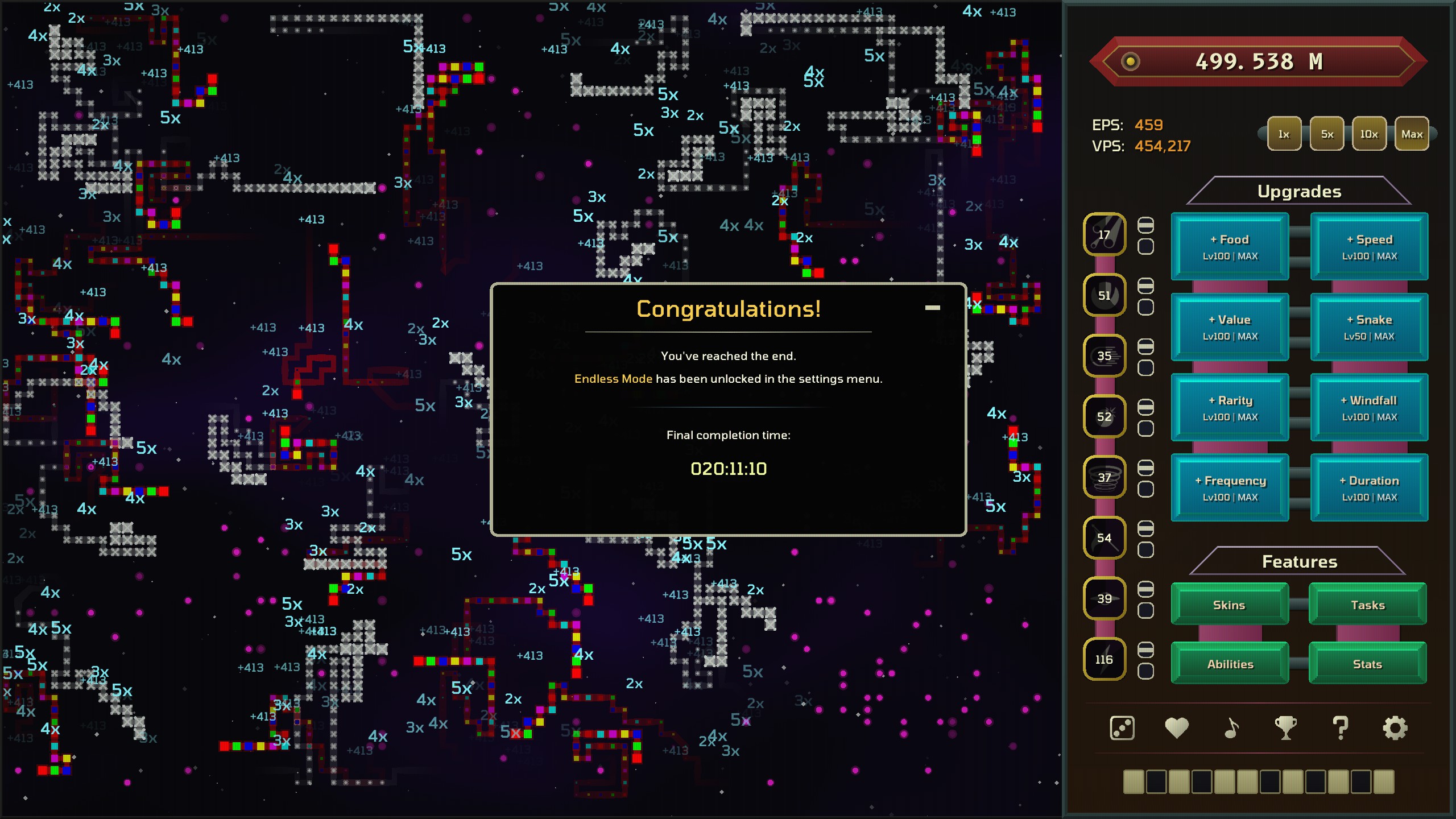 A slow and meditative incremental idler where you manage colorful snakes. Watch them collect food, then spend the food on upgrades and abilities for your colony.