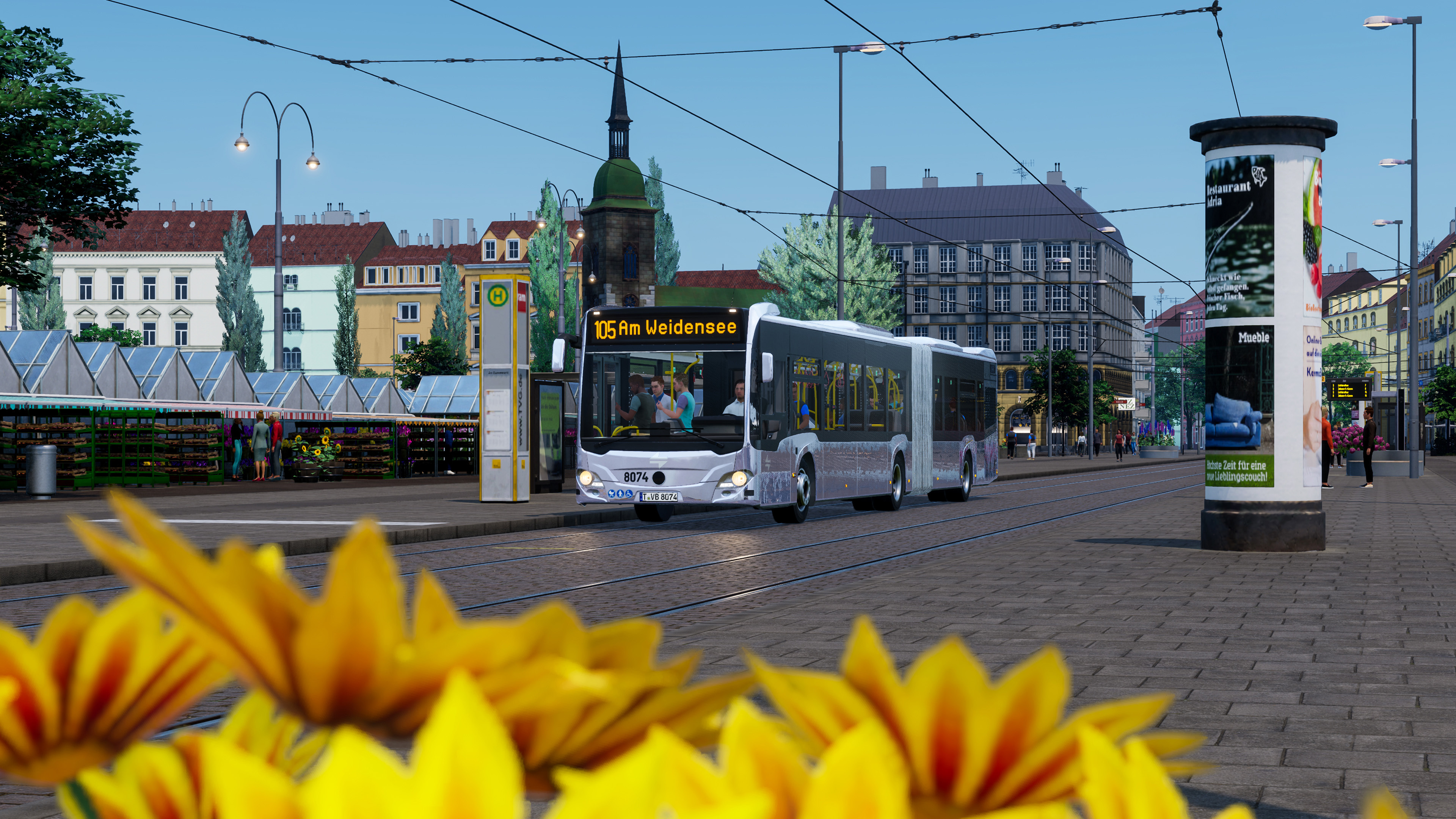 You’re not just a passenger, though. You can take control of any vehicle at any time and drive a bus or tram yourself – all without loading screens. You can also hand vehicles back to KI drivers at end stops and move freely through the city, making the transition between bus and tram much more natural and immersive.