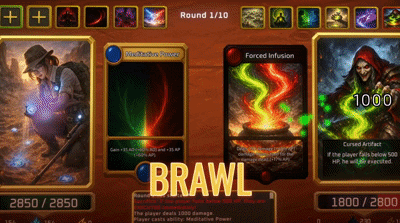 Turn-based card game with fast runs: Choose one of many heroes with unique passive abilities, build your deck from 10 abilities, and face tactically selected opponents. Fight, unlock cards, and dominate short battles.