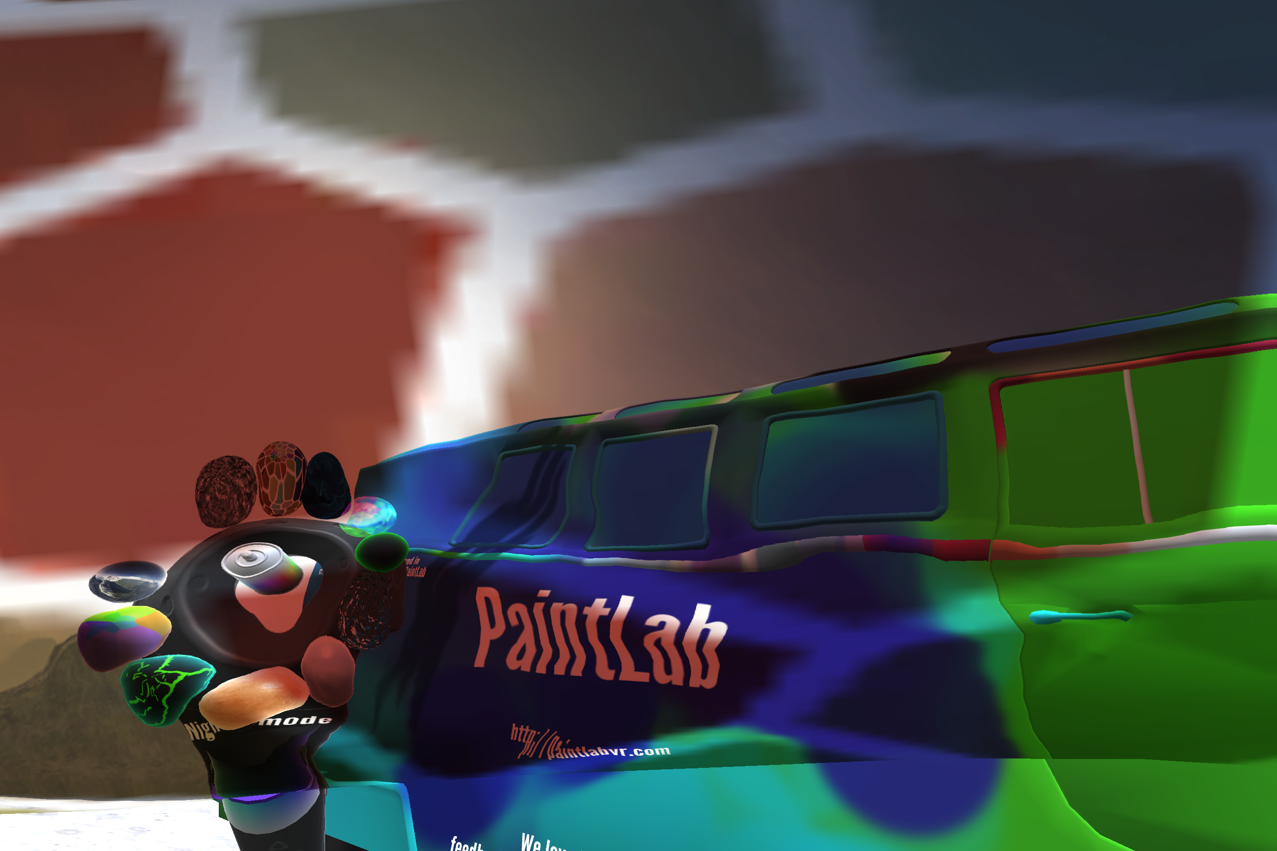 Paint or sculpt your own 3D creations and play around with them in Virtual Reality! It’s free, easy to use and a lot of fun to use PaintLab with friends and family!