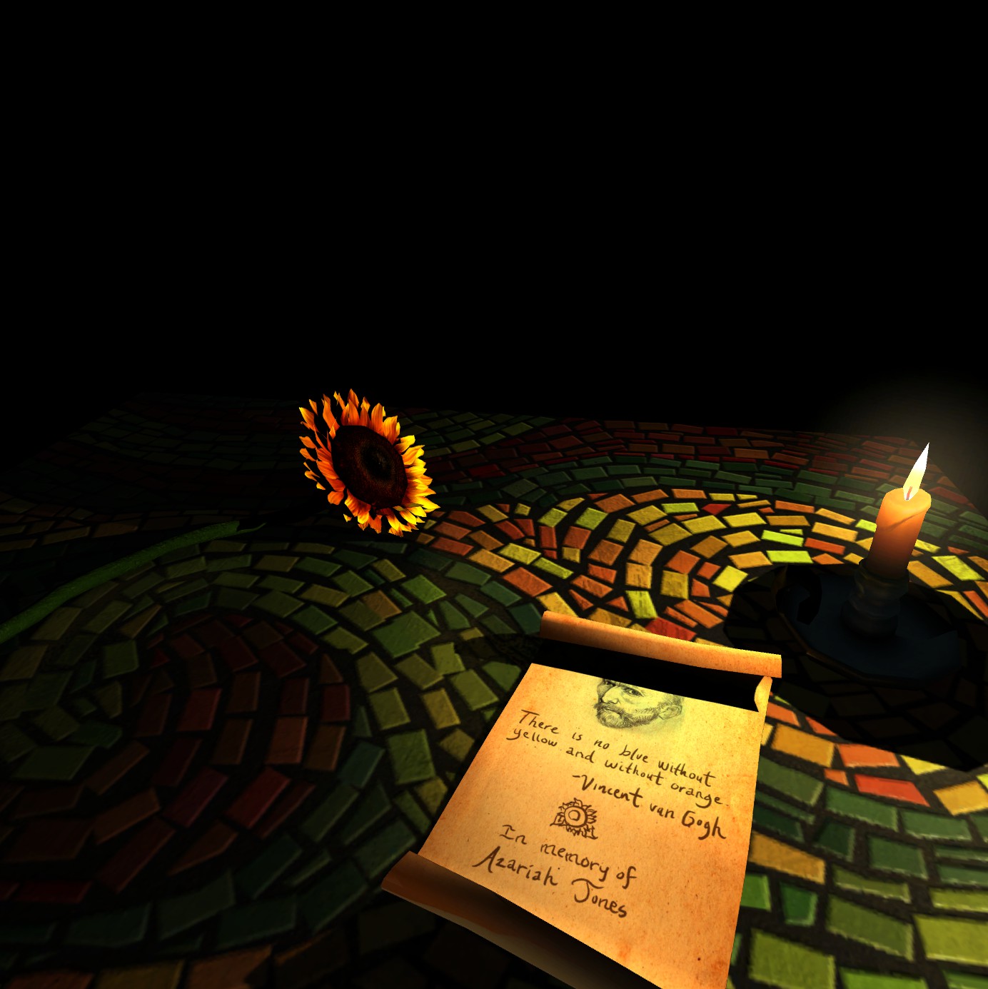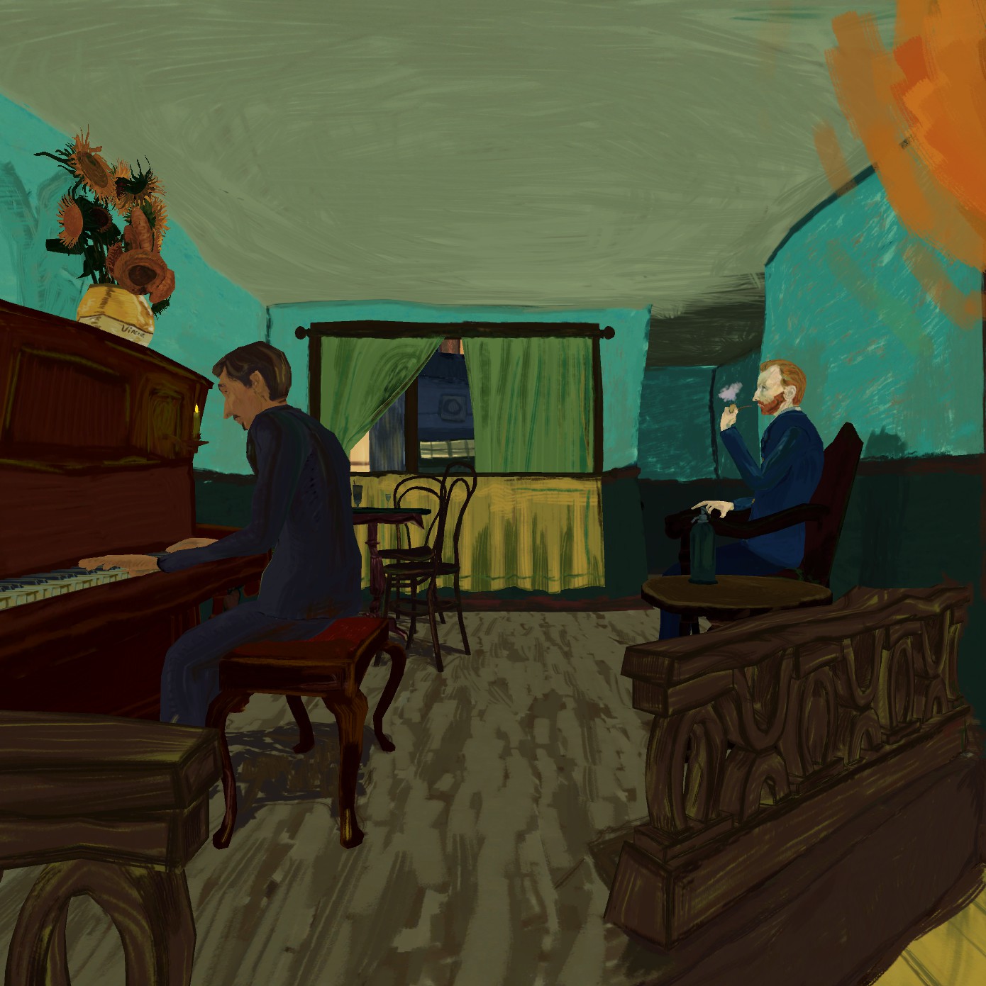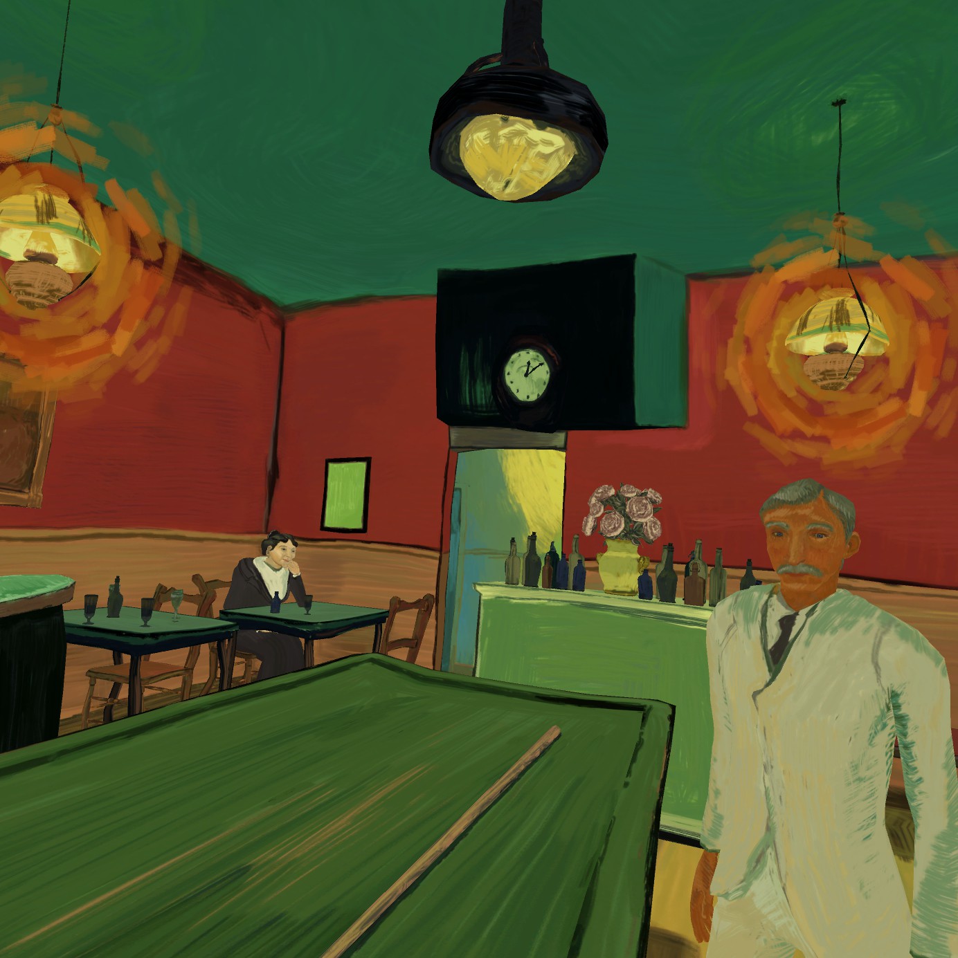 The Night Cafe is an environment that allows you to explore the world of Vincent van Gogh first hand. Take a moment to enjoy his iconic sunflowers in 3 dimensions or walk around the chair he painted in his bedroom to see it from another angle. Step into the vivid colors straight from his palette.