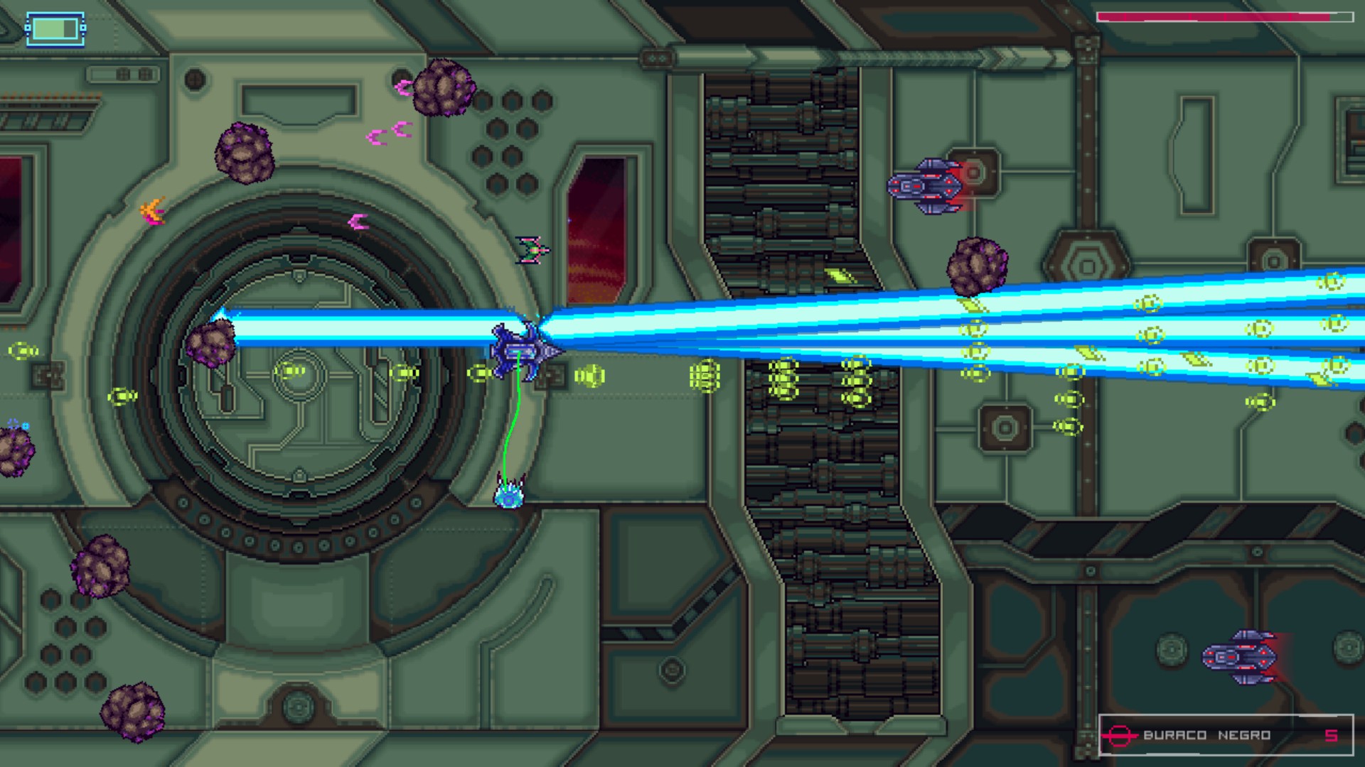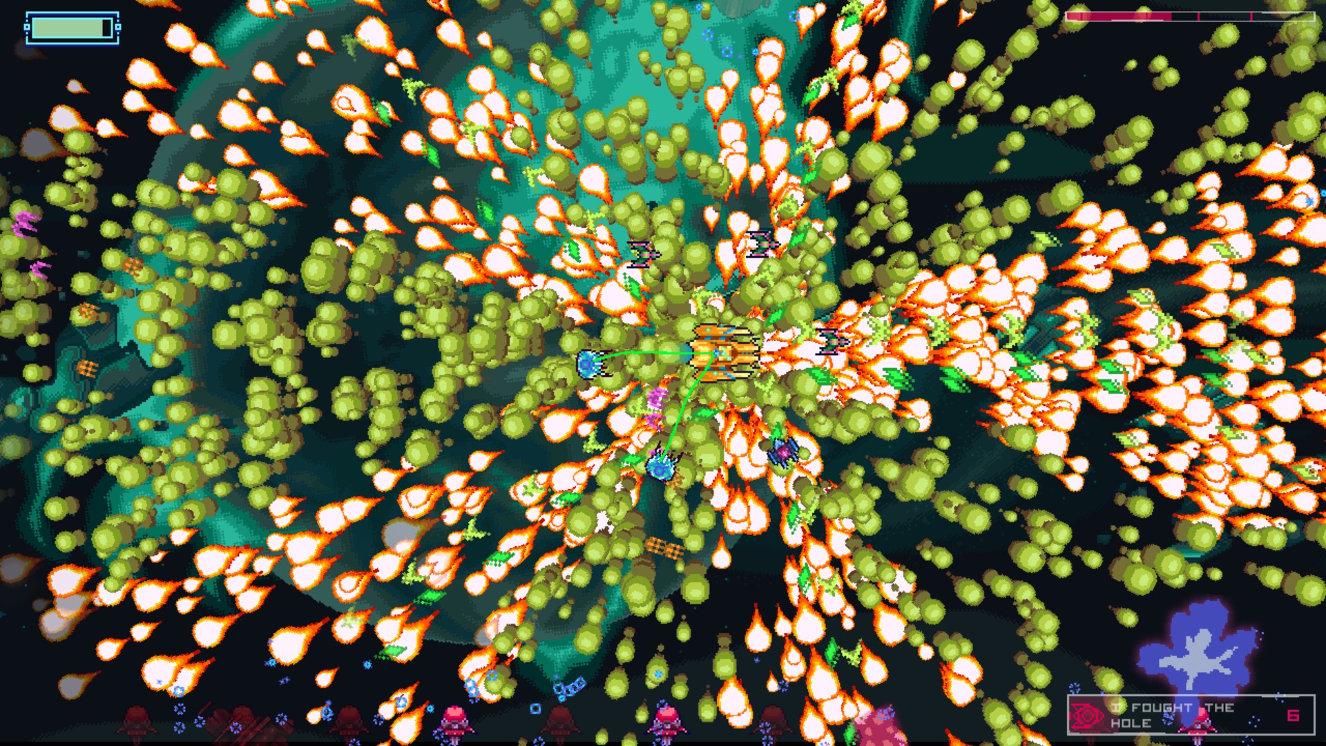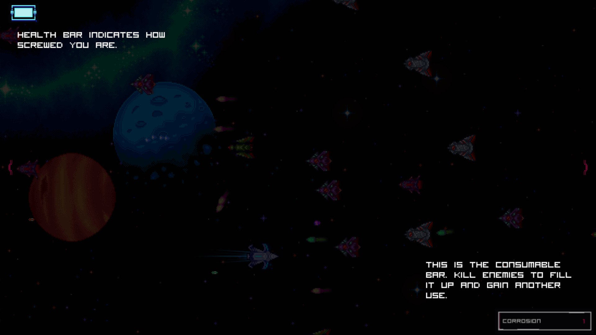 Run through the universe in this rogue-like-ish space-shooter. Discover the numerous perks/consumables and their synergistic effects. Explore the randomly-generated galaxy to find merchants, unlock spacecrafts, collect Cartridges and checkmark your kills of the various galactic overlords.