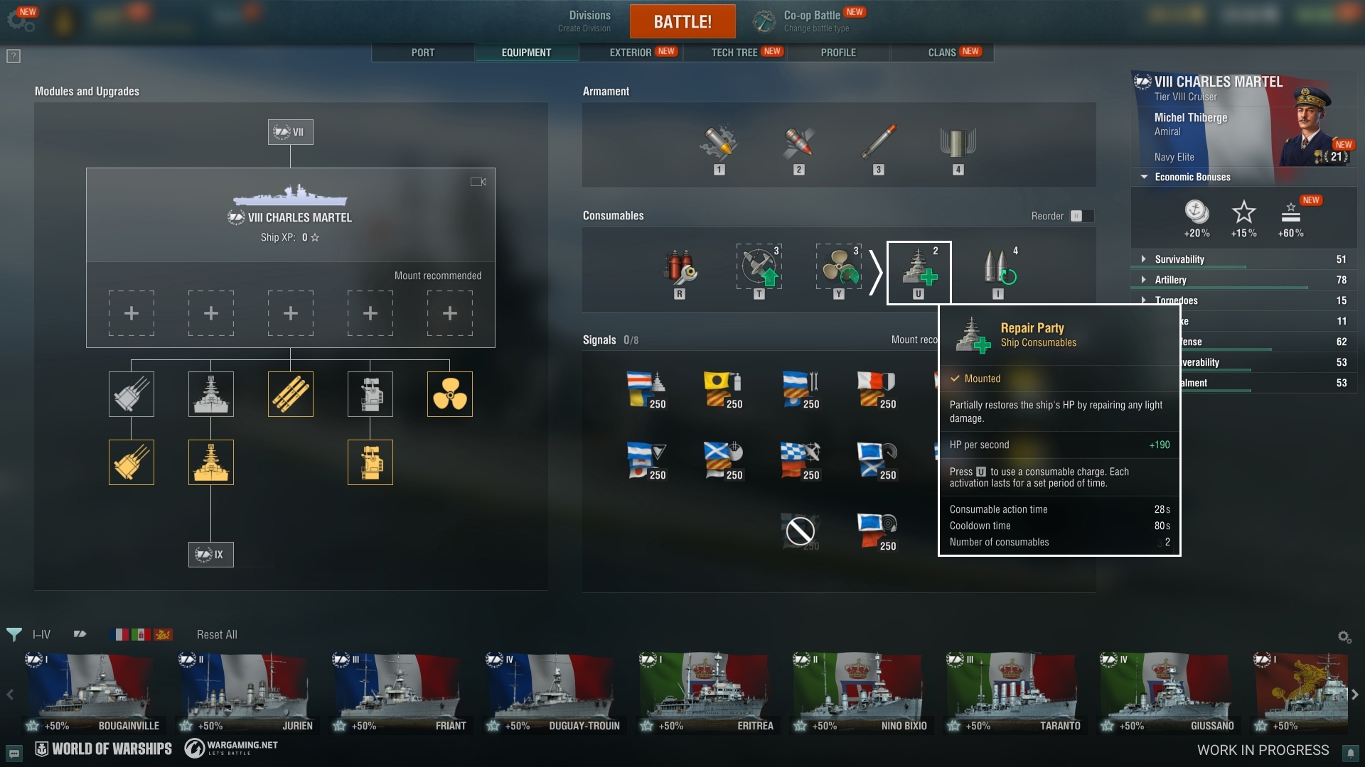 These subs stand out for their focus on gunnery—an unusual trait for submarines. Their gunfighting tactics will be aided by Exhaust Smoke Generator, as well as Repair Party from Tier VIII.