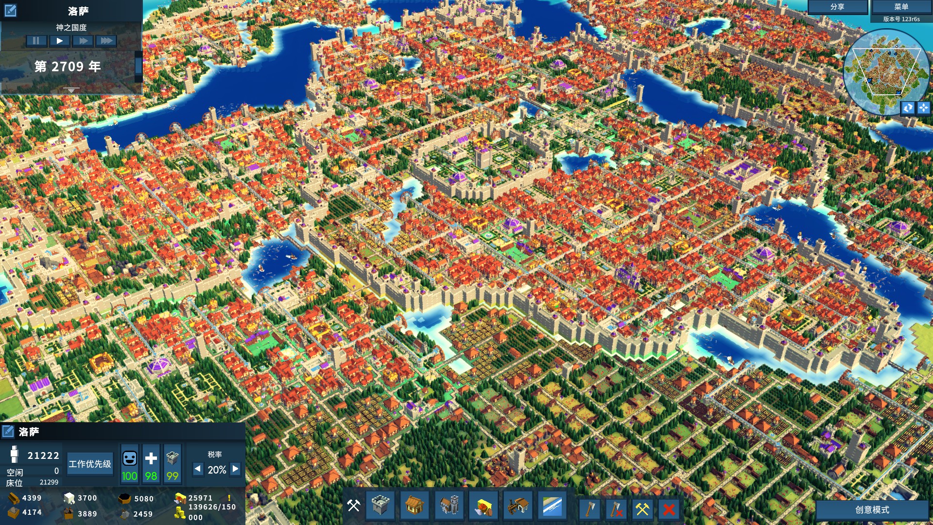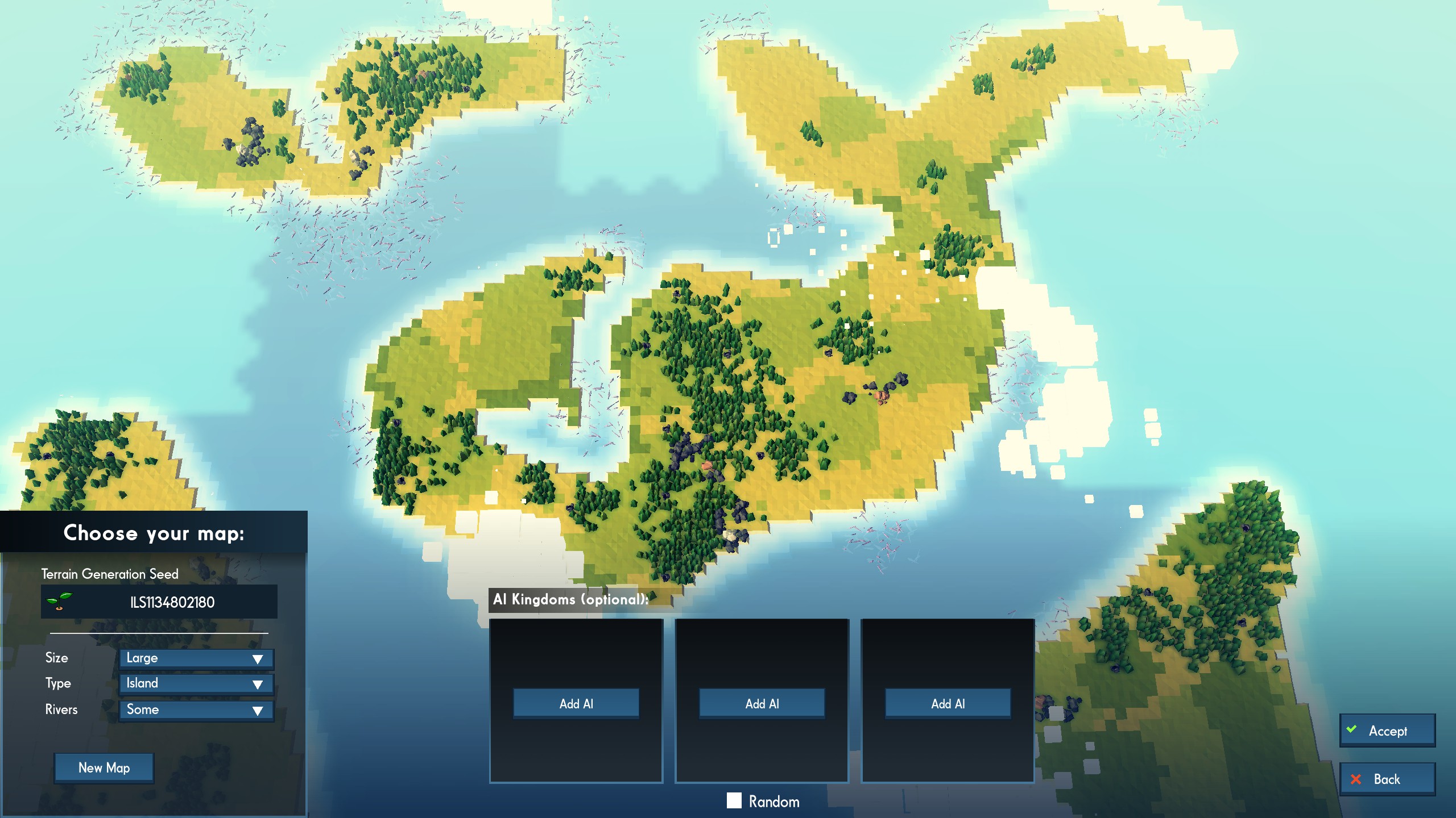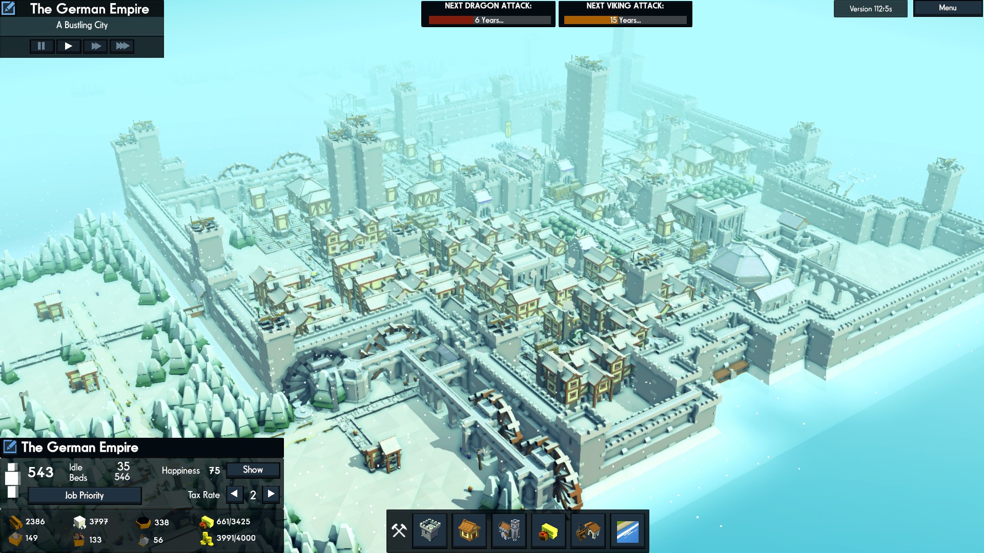 Kingdoms and Castles is a city-building simulation game about growing a kingdom from a tiny hamlet to a sprawling city and imposing castle. Make trade agreements, alliance, and war with neighboring AI controlled kingdoms. Each villager and resource is individually simulated.