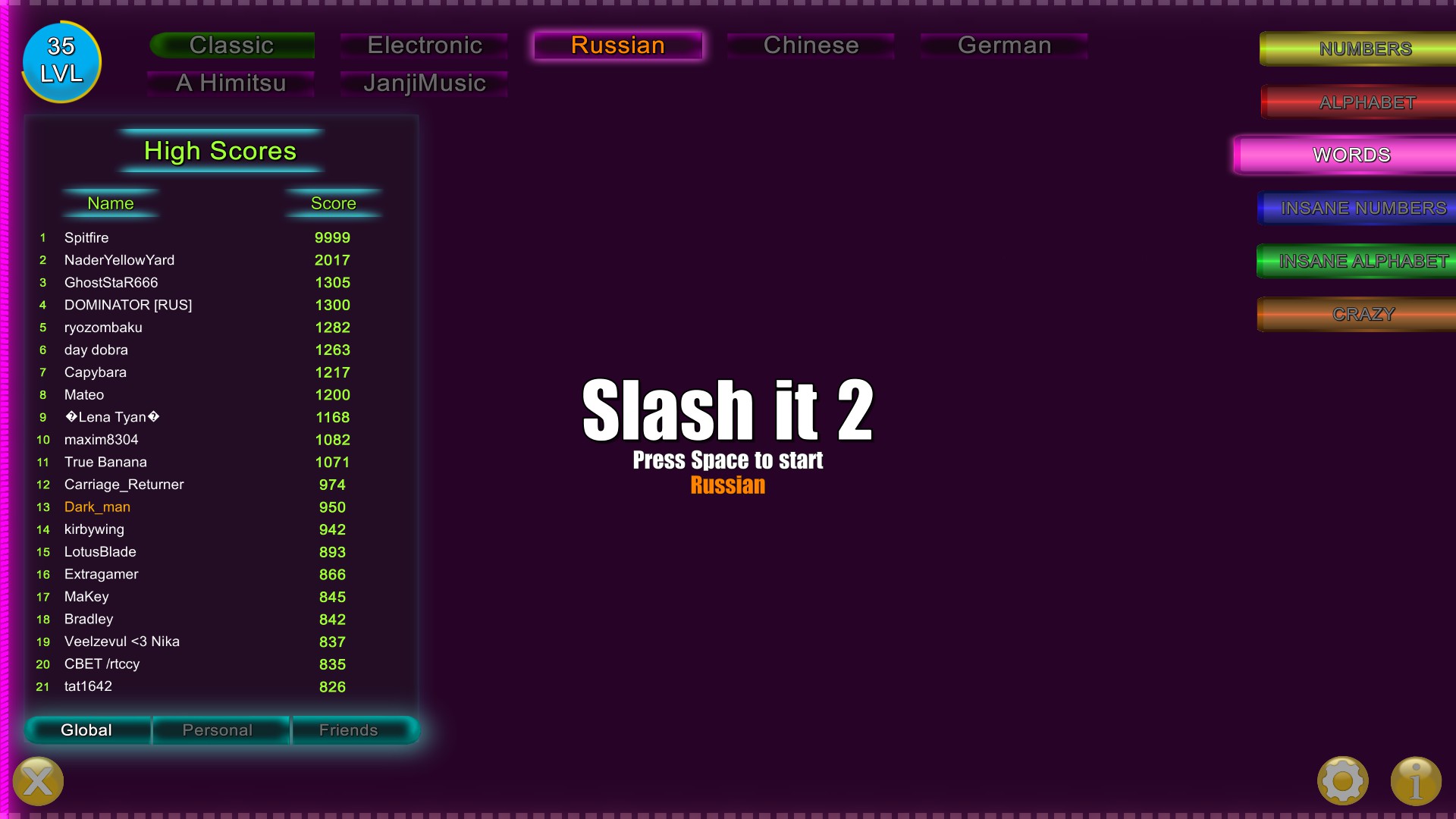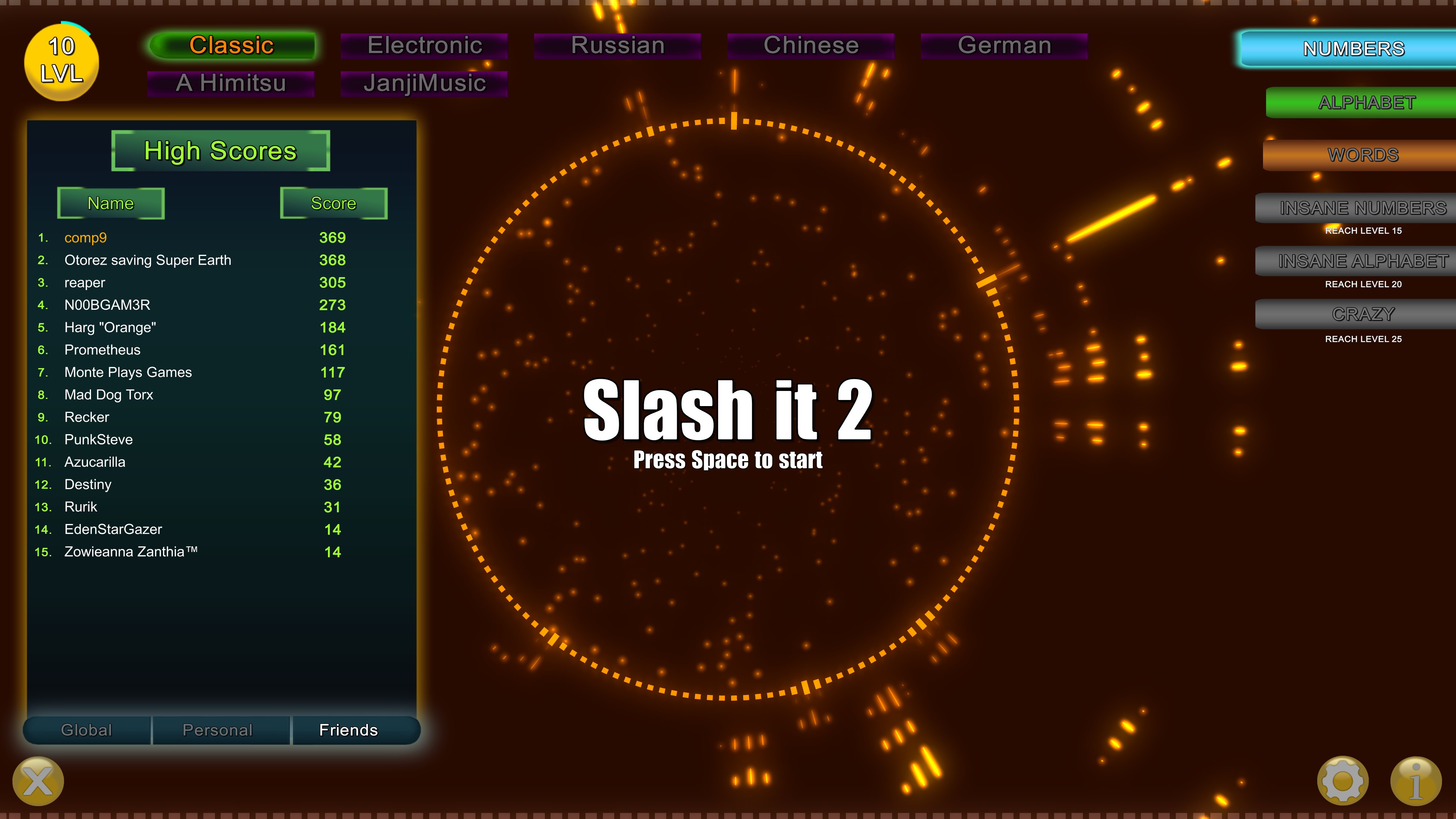 Slash It 2 is a 2D colorful arcade game. The goal is to press letters, numbers and type words in the right time and direction.