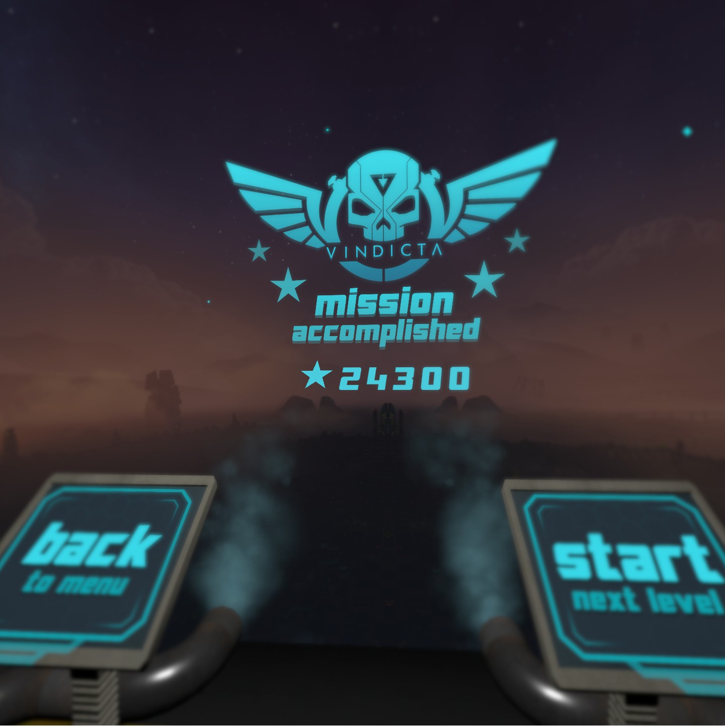 Experience the thrill of VR action gaming in VINDICTA, a first person shooter game built from the ground-up for VR! Feel part of the action as you dive into VINDICTA, climbing and crawling your way through, picking up weapons, taking cover and shooting your way to the next levels!