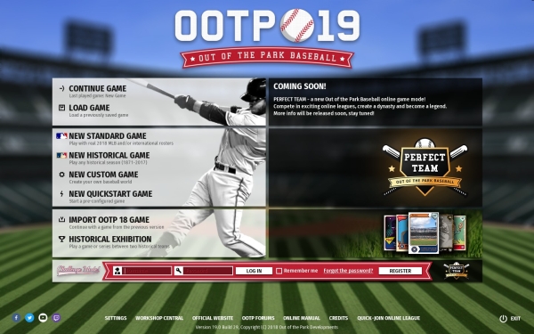 Out of the Park Baseball 19 - officially licensed by MLB and the MLBPA - is the 2018 entry in the world's best-rated sports gaming franchise! Guide your favorite MLB team to glory, play any historical season or compete online in Perfect Team. A baseball fan's dream come true!