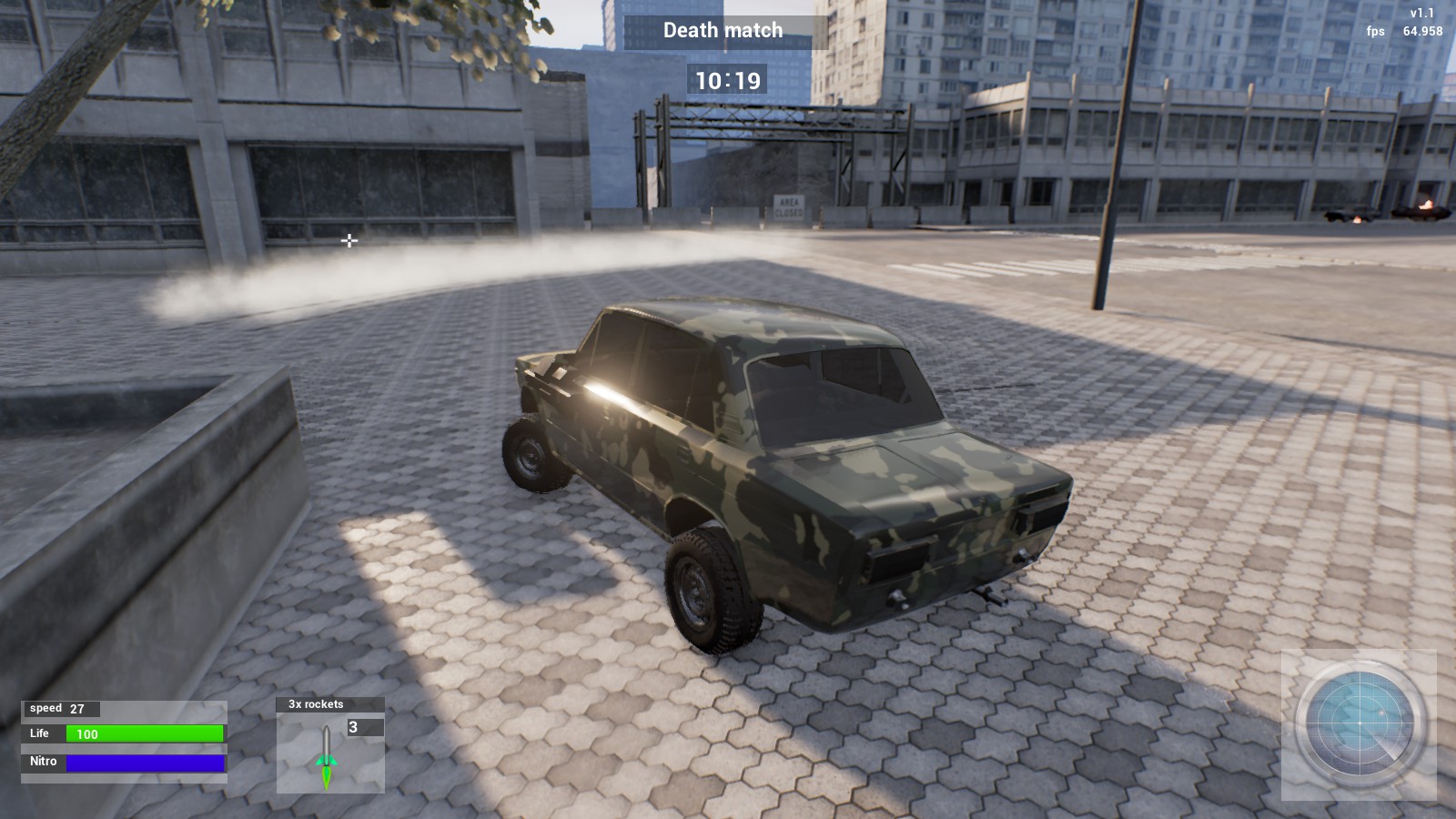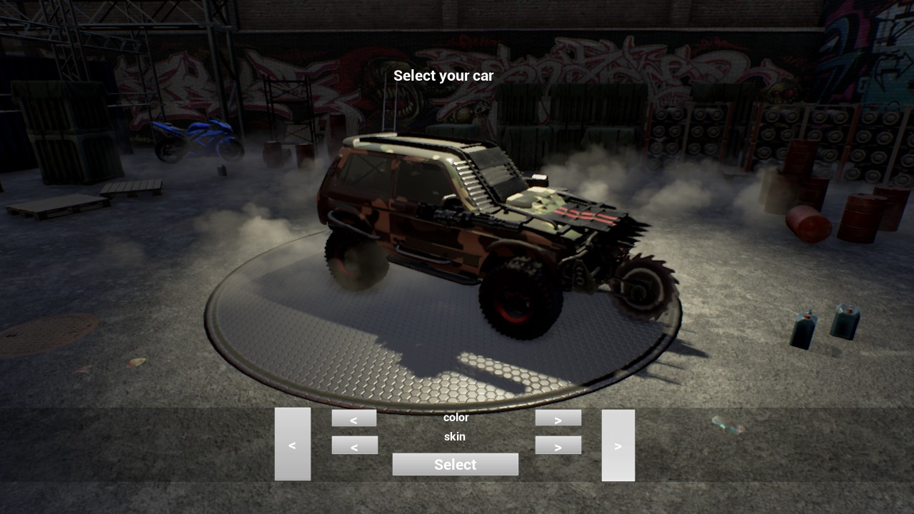 NitroRage - crazy multiplayer races with weapons. Destroy your competitors using the minigun, rocket launcher, flamethrower and other guns, or abuse of the machine with a RAM-style Derby.