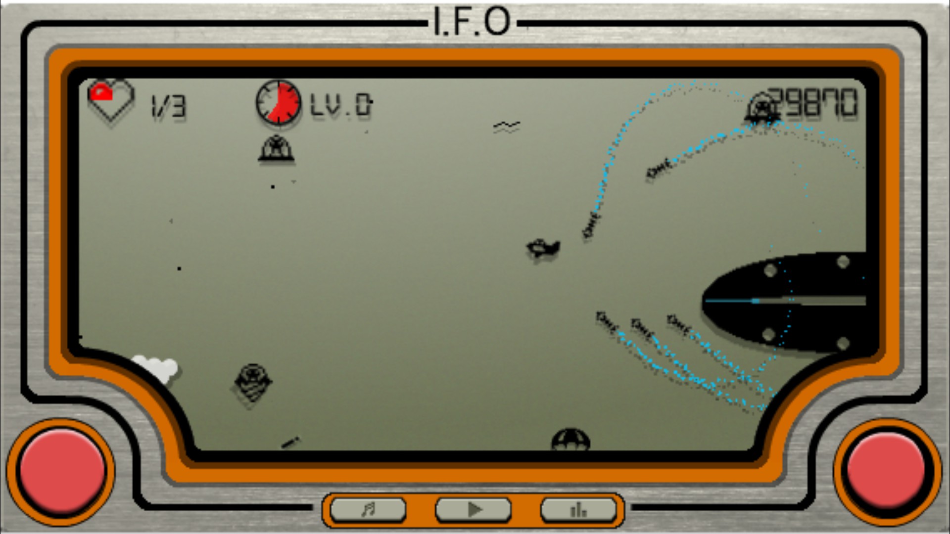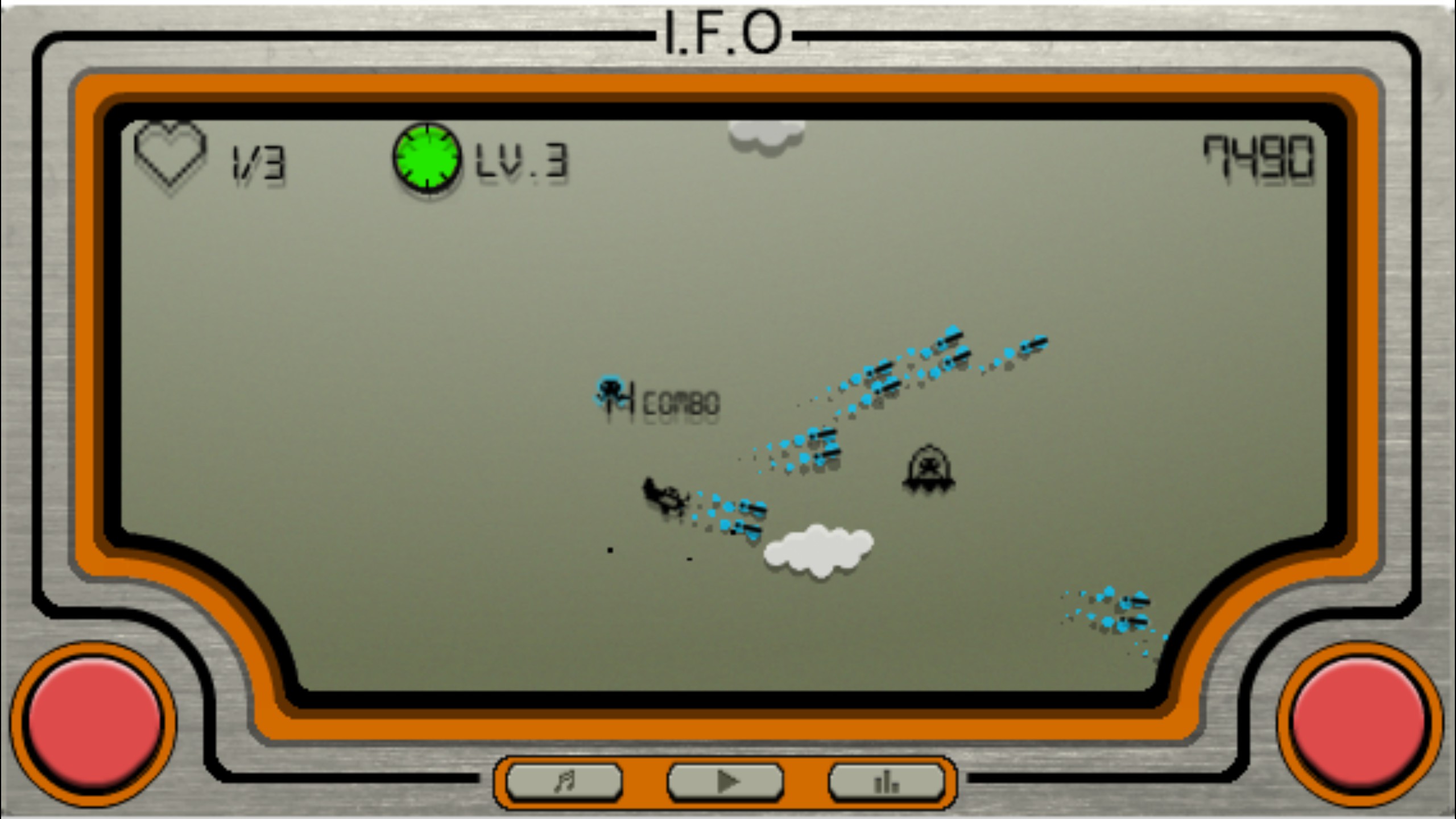 I.F.O is an old school LCD-style shoot'em up game. You have to shoot UFOs using a classic aircraft and save the animals which kidnapped by the aliens. Let's save the Earth from the aliens! You are the last hero of the world.