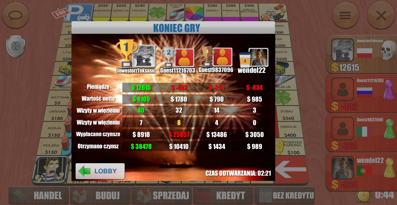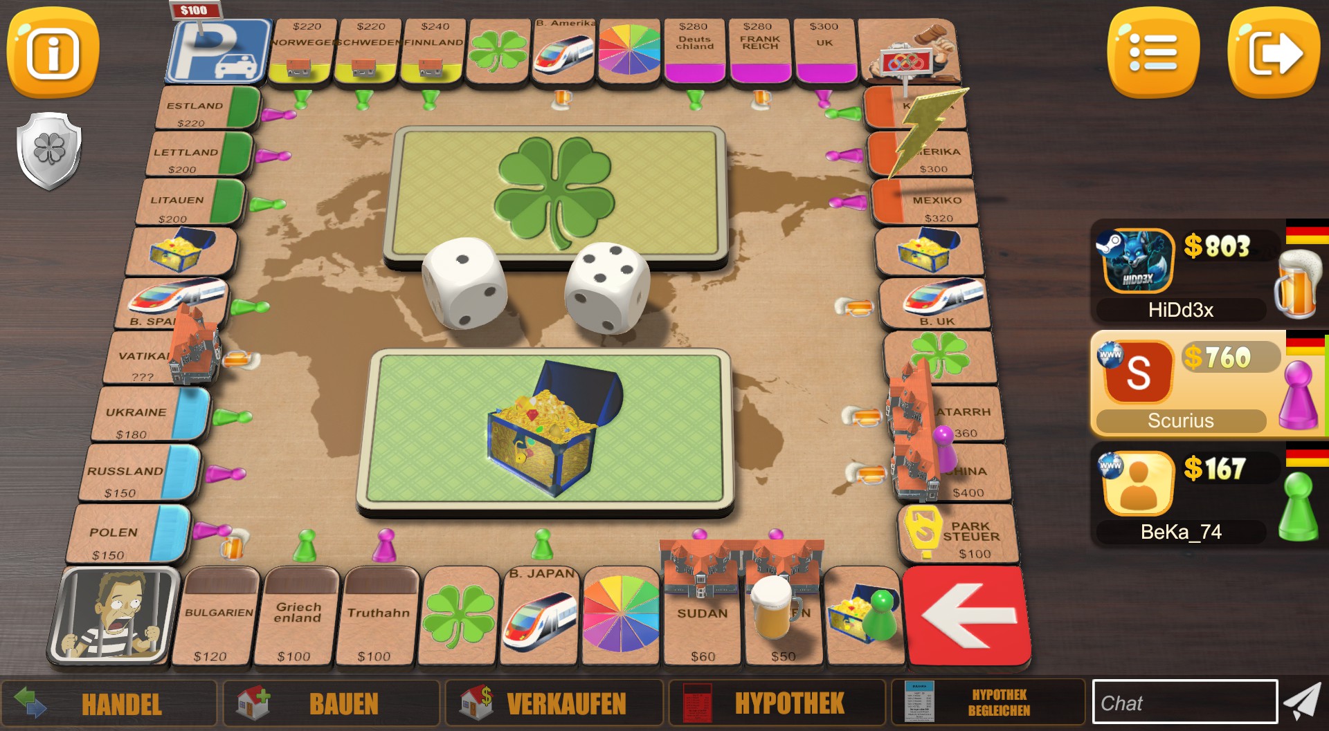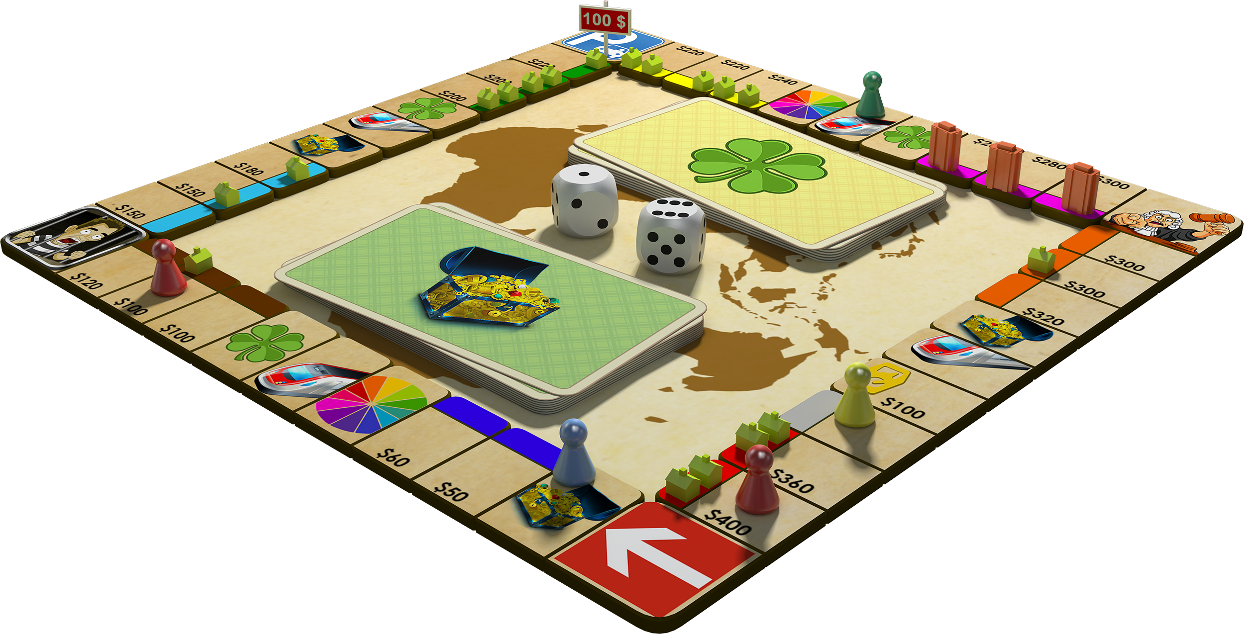 Rento is multiplayer business dice game. It is board game for 2 to 8 players. Trade lands, build houses, win auctions, roll wheel of fortune, risk in Russian Roulette and have fun.