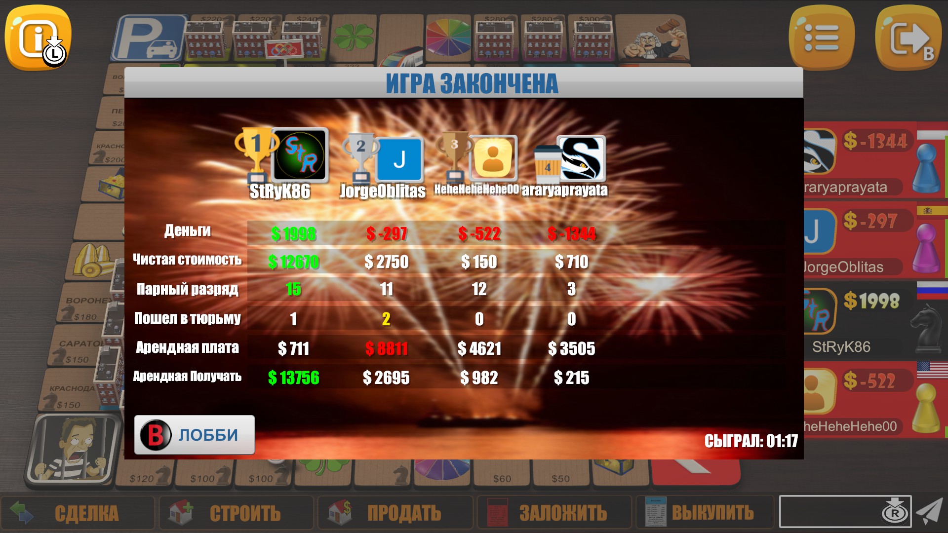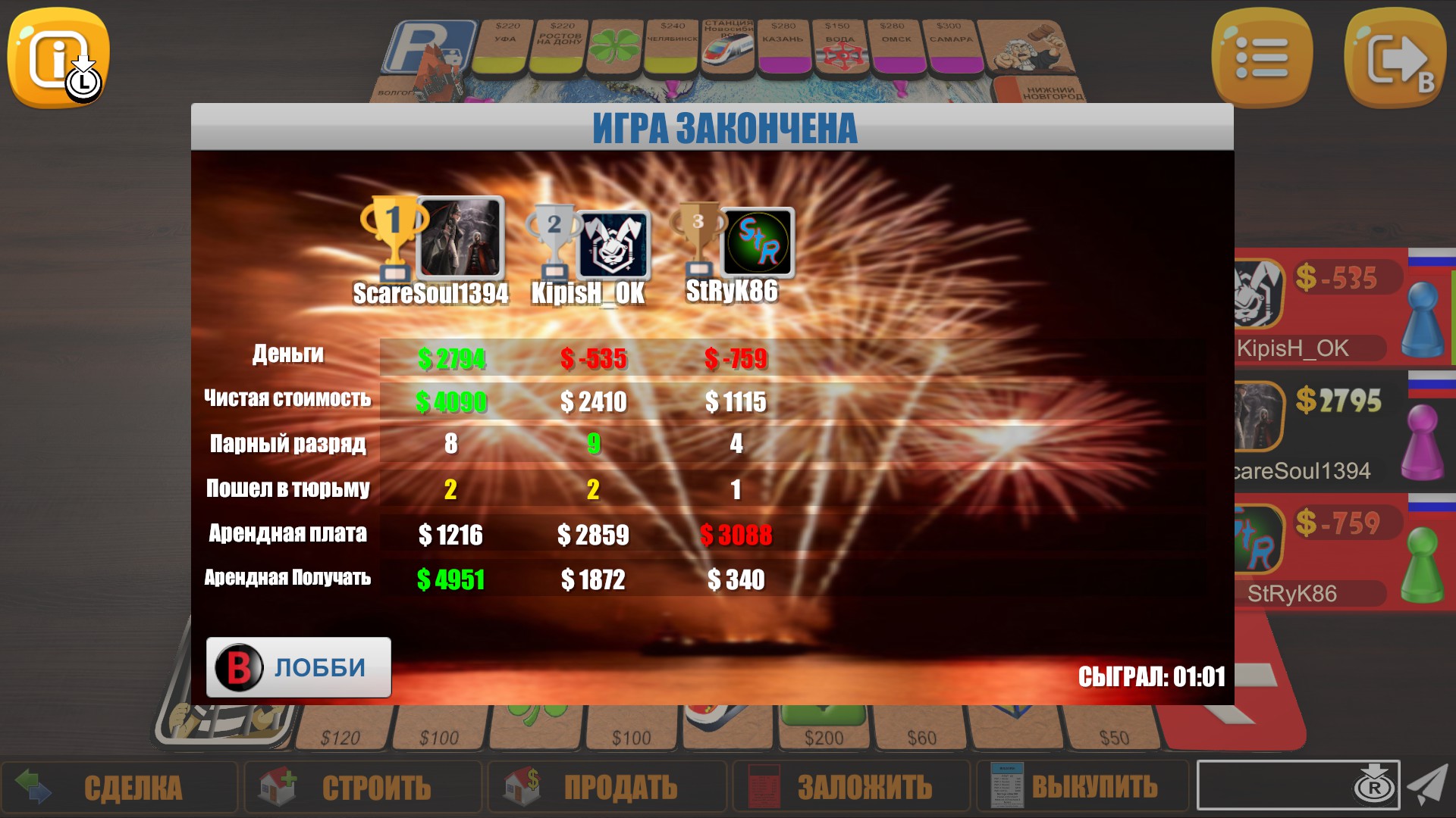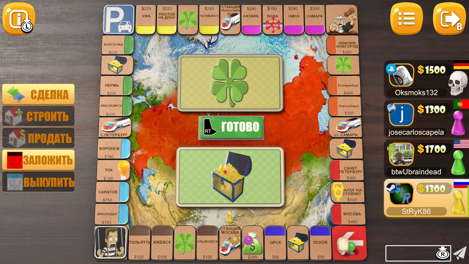 Rento is multiplayer business dice game. It is board game for 2 to 8 players. Trade lands, build houses, win auctions, roll wheel of fortune, risk in Russian Roulette and have fun.