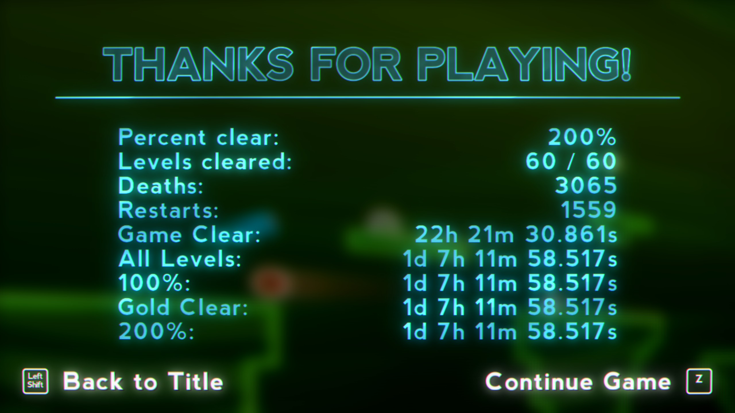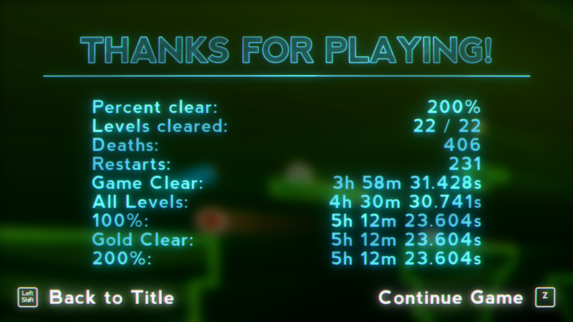 A 2D platformer that focuses on tight movement, careful exploration and going fast! Every level has been meticulously crafted to make exploring and speeding as fun as possible with many deep level mechanics. It might not look like much but this hard yet fair platformer feels like no other.