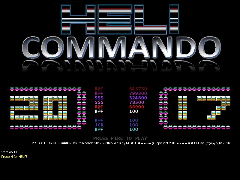 HELI-COMMANDO 2017 is a retro arcade helicopter game in C64 style like the games in the 80s. Fly a helicopter and rescue mens, cats and collect diamonds and many more types of several objects to gather the highscore of the game.