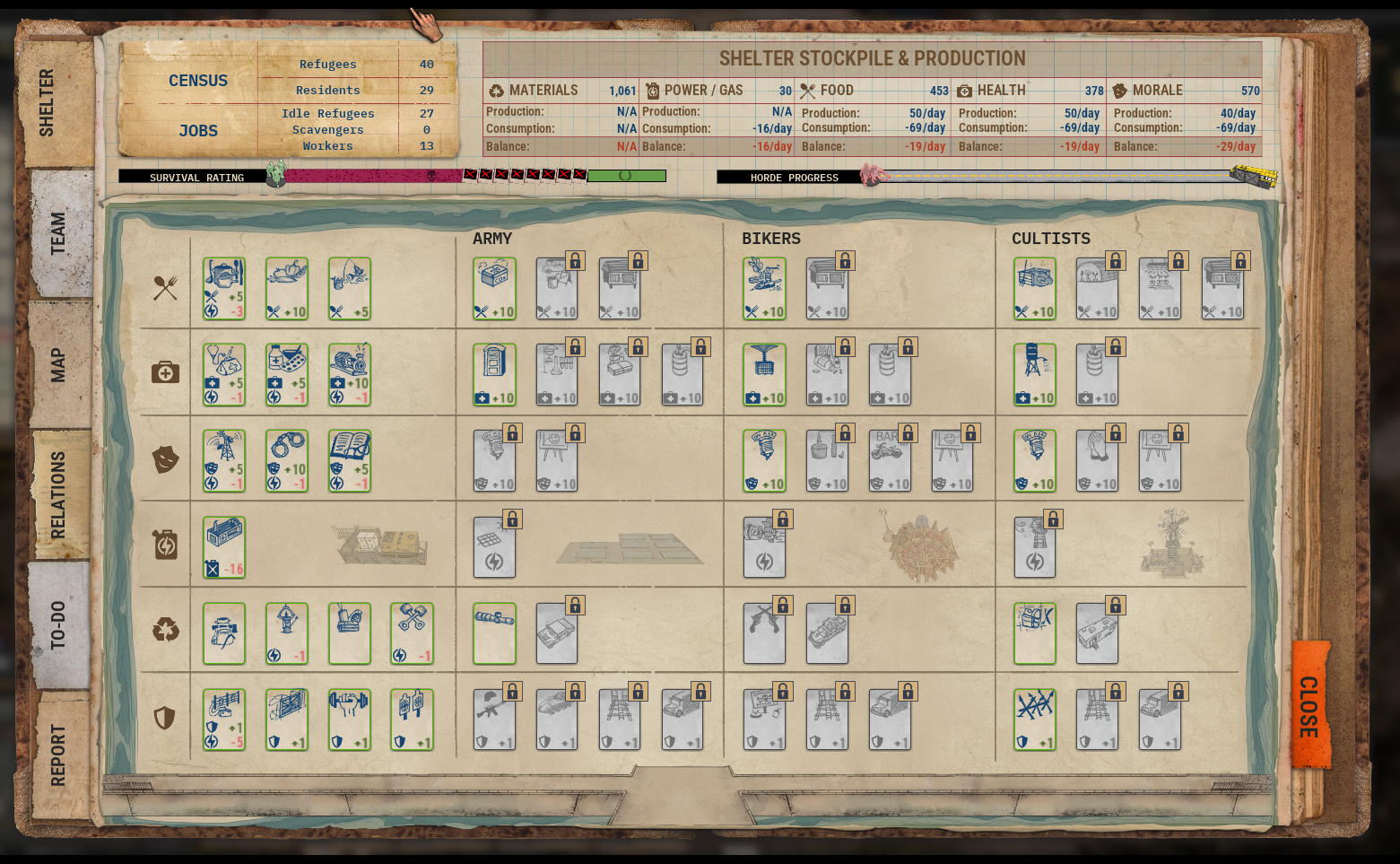 Old school TBS, post-apoc survival and RPG. Recruit deranged locals in your militia, ally local factions and fight those you hate. Haul loot back and rebuild your shelter, doctor your wounds, and fix your guns. People need feeding, booze needs brewing and there is an end of the world to enjoy.