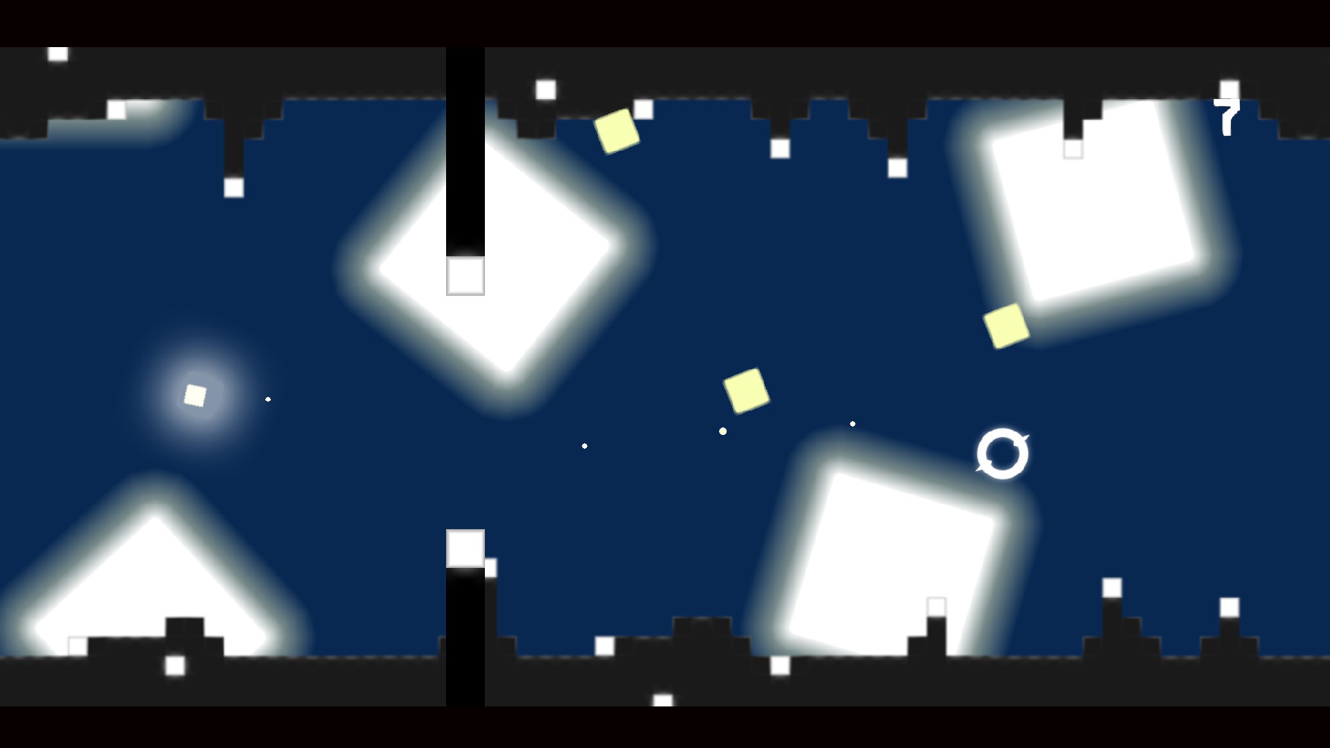 Symbiosis of styles "shoot'em up" and "flappy bird". Completely randomly generated obstacles and enemies.