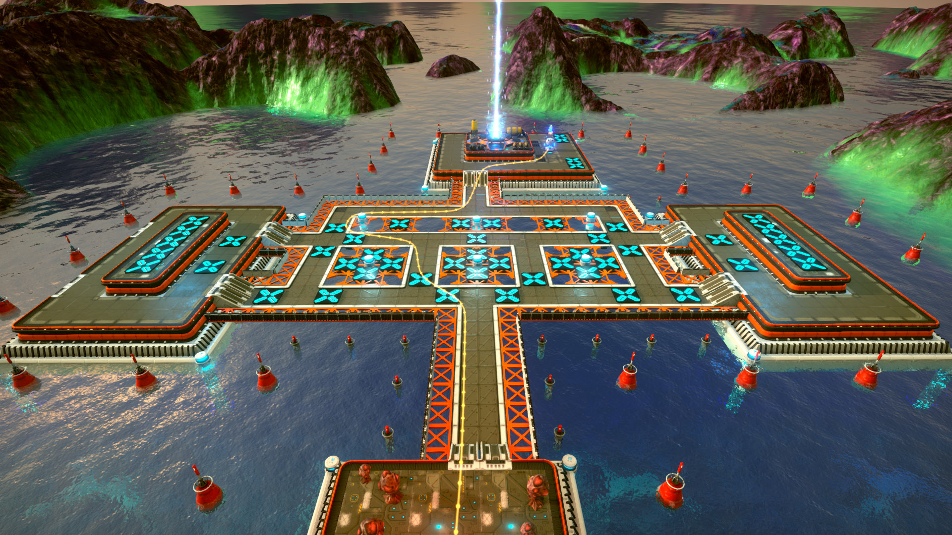 Defense Task Force Featuring Large Scale Procedurally Generated Tower Defense Battles with FPS Quality Visuals and Infinite Waves. 10 tower types, with different attacks , 3 levels plus boosts. 25 Enemy alien species: Regulars, Swarmers, Racers, Cloakers, Healers, Boss Units and Spawners.