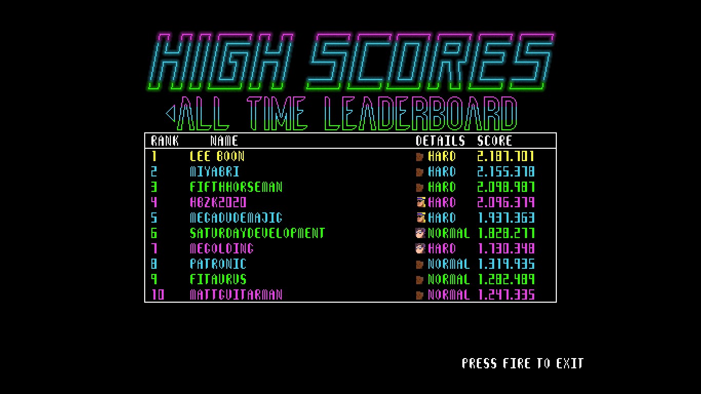 Neon Aileron is a shoot 'em up for people who are bad at shoot 'em ups. Enjoy the forgiving gameplay and 16-bit era graphics while shooting lots of enemies that spawn to the soundtrack!